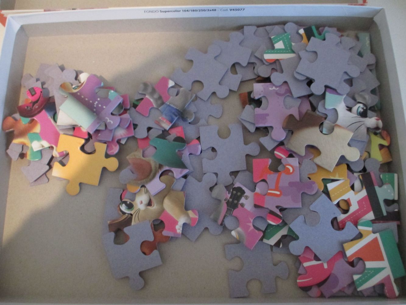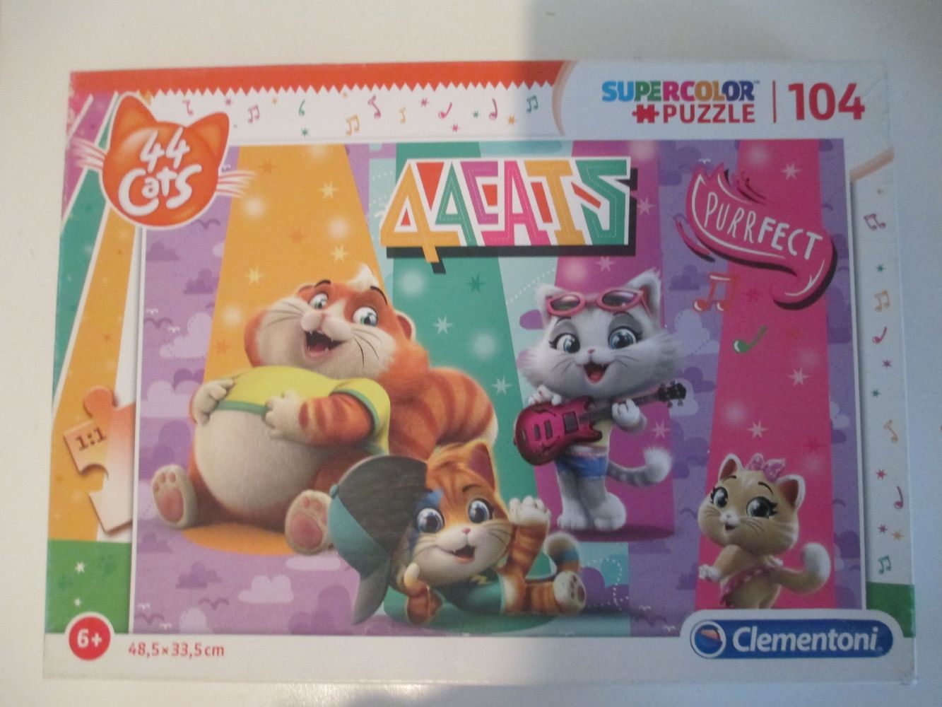 Descrizione:Puzzle dei 44 gatti. 104 pezzi. Dimensione del puzzle completo: 48,5 x 33,5 cm.