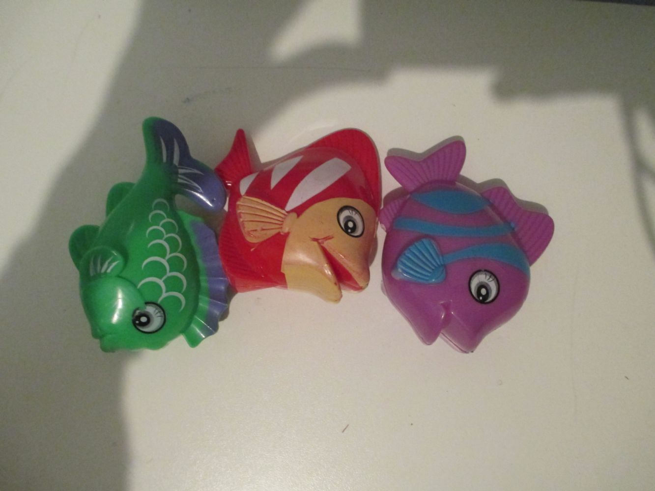 Pesciolini giocattolo con calamita sulla bocca. Servono per giocare a pesca. Le canne da pesca erano rotte.