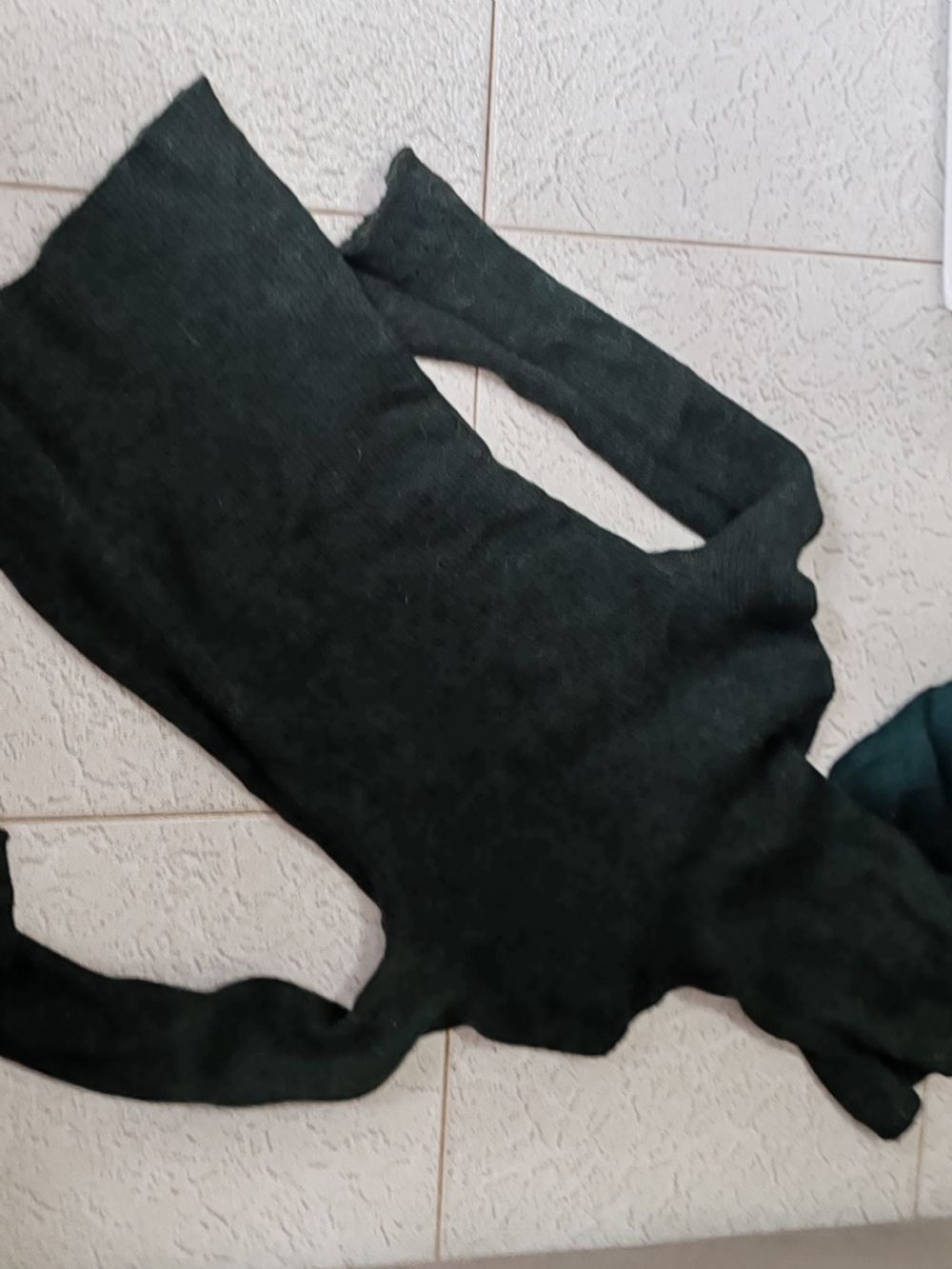 Descrizione:Maglione lungo in filato peloso, con collo alto, verde bottiglia, s/m perché abbastanza elastico