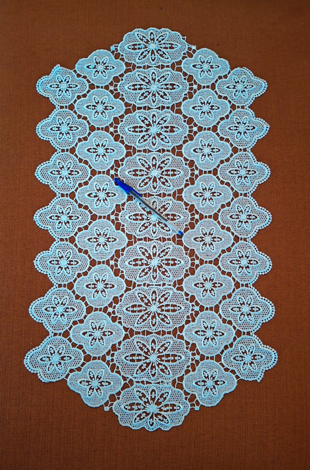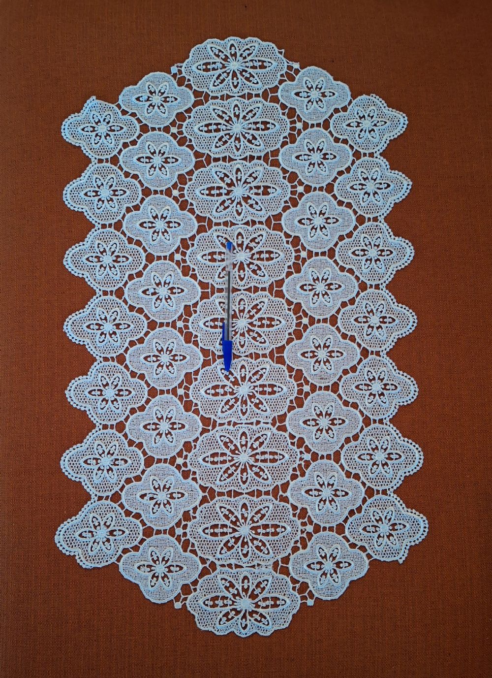 Descrizione:Centrotavola in pizzo sintetico usato poco, penna per confonto dimensioni.