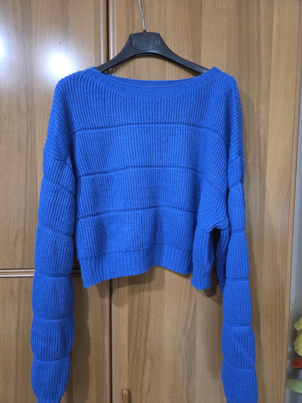 Maglioncino crop blu Shein tg L 100% acrilico, ottime condizioni, qualche pallino