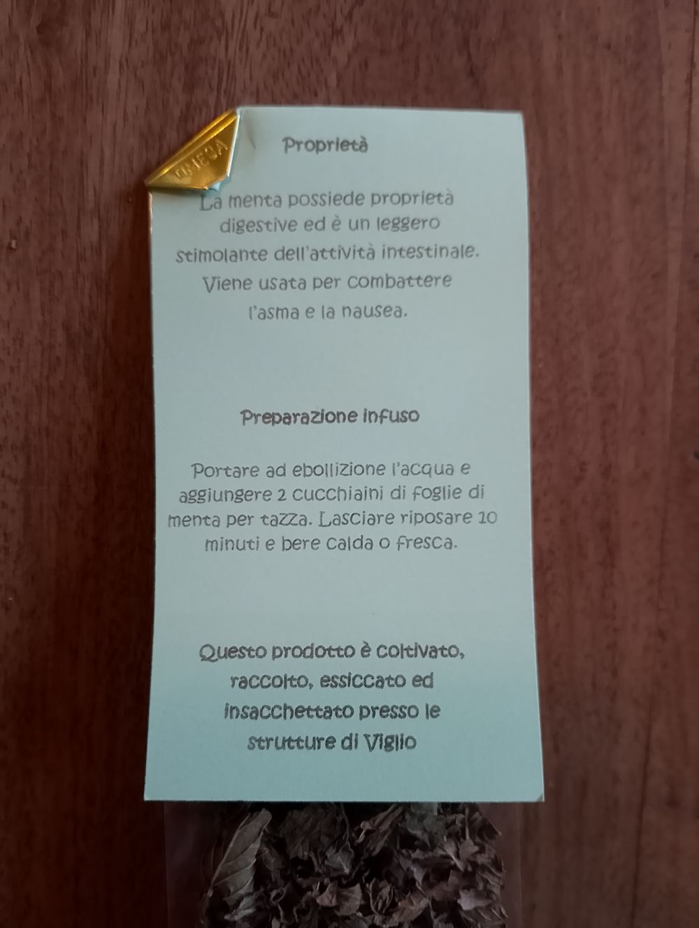 Bustina piccola di menta secca, me l'hanno appena regalata ma ne ho già tanta.