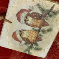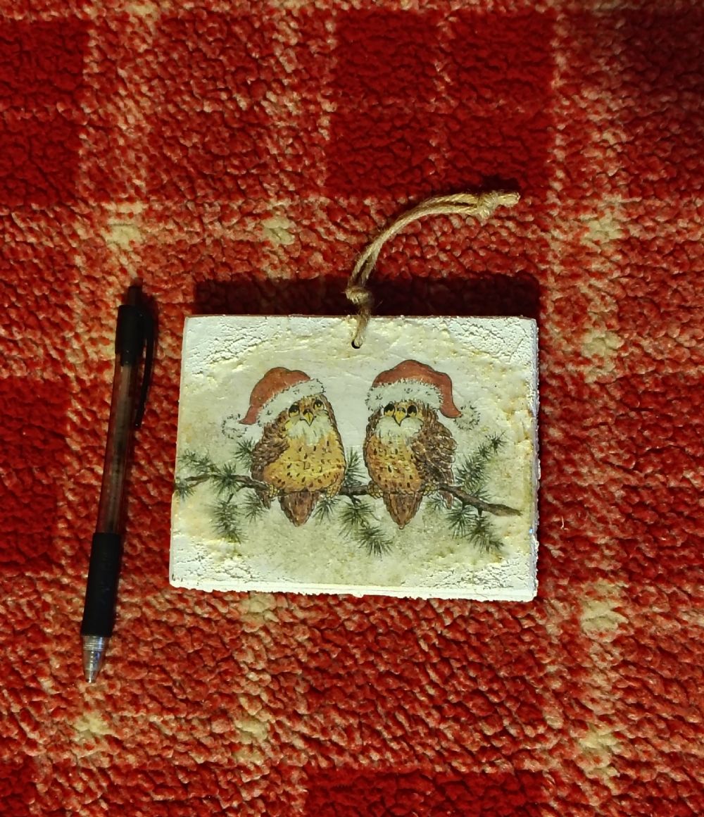 Descrizione:Quadretto natalizio con gufetti fatto artigianalmente. Ricevuto così.