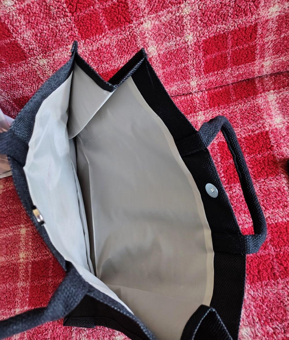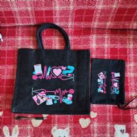 Descrizione:Borsa in materiale sintetico rivestita internamente (chiusura a calamita) con pochette abbinata (in cotone con cerniera). Misura borsa: L 35 cm x H 30 cm x P 11 cm. Misura pochette: L 22 cm x 15 cm.
