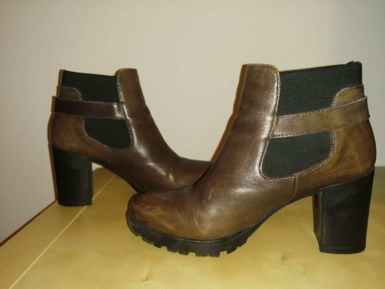 Misura 38. Colore Marrone scuro. Tacco 8 cm.