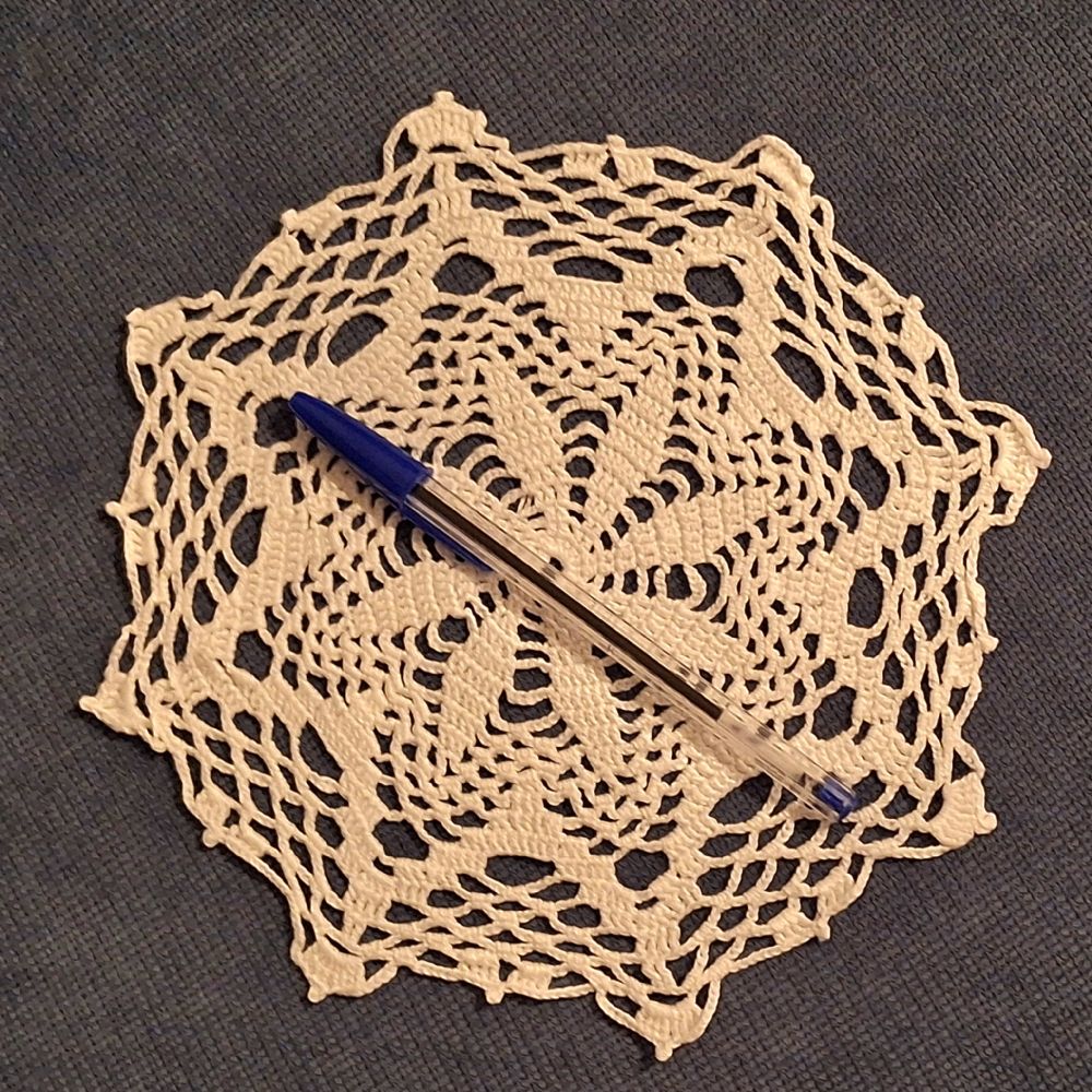 Descrizione:Centrino lavorato ad uncinetto, 100%n cotone.