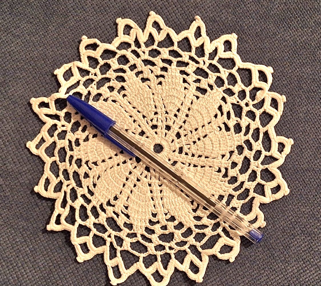 Descrizione:Centrino lavorato ad uncinetto, 100%n cotone.