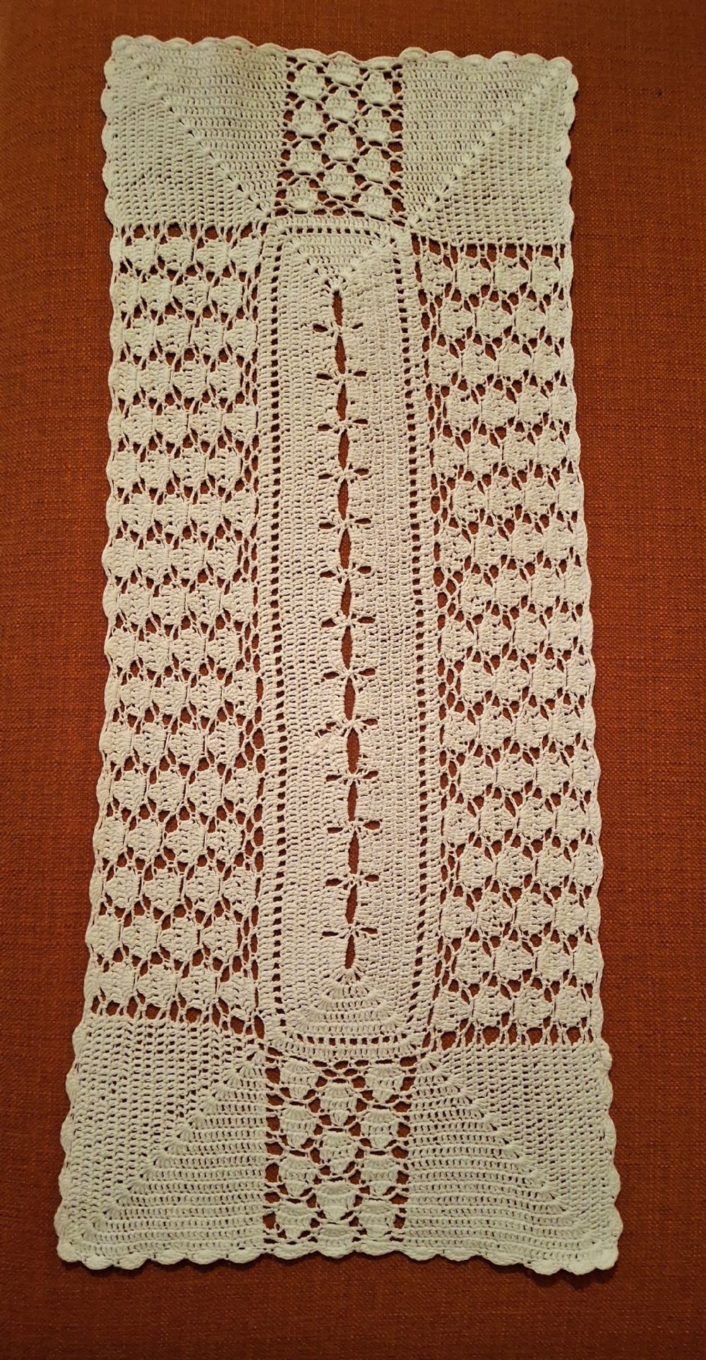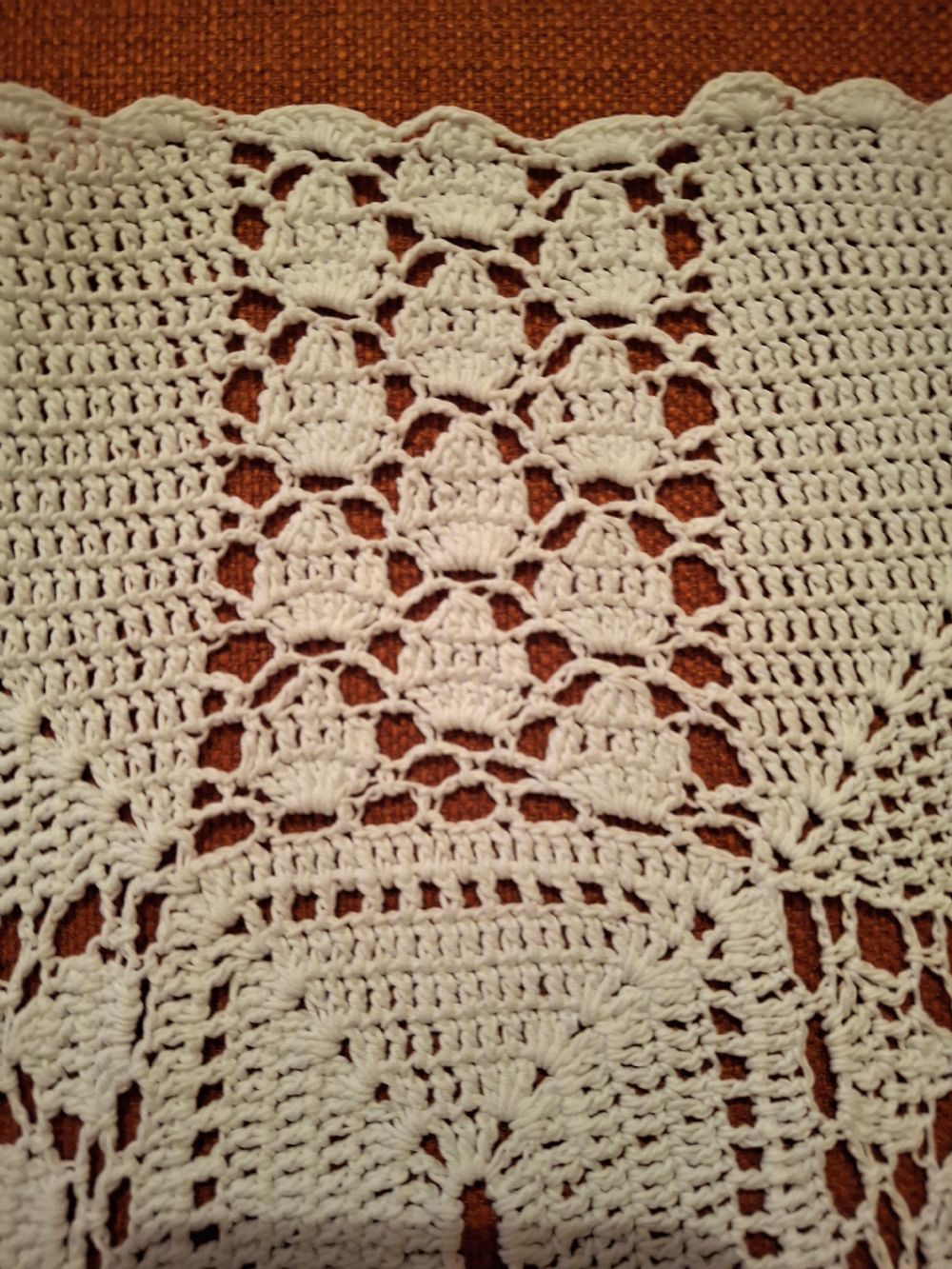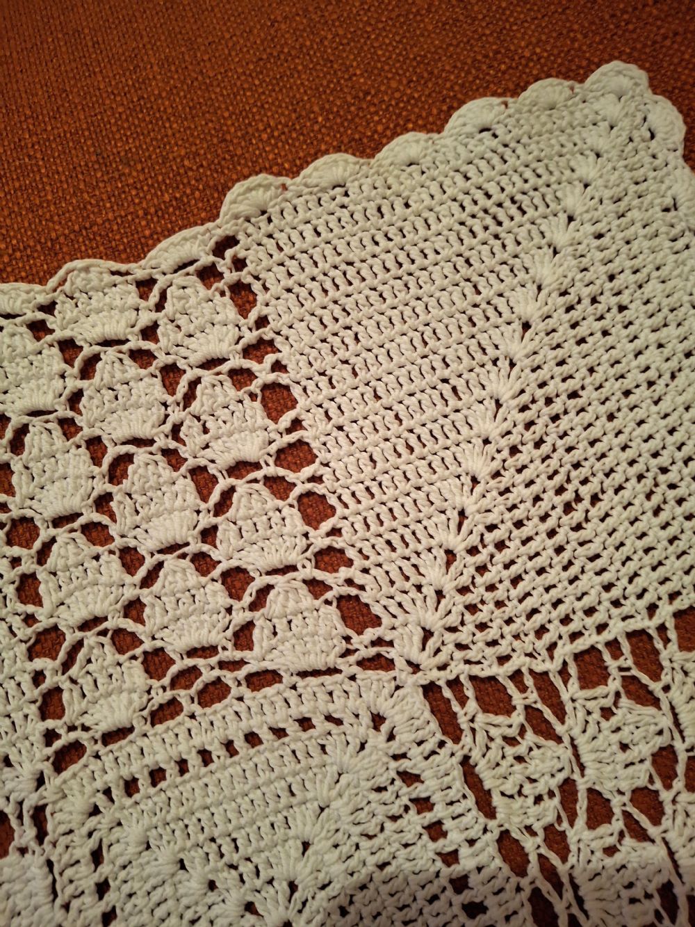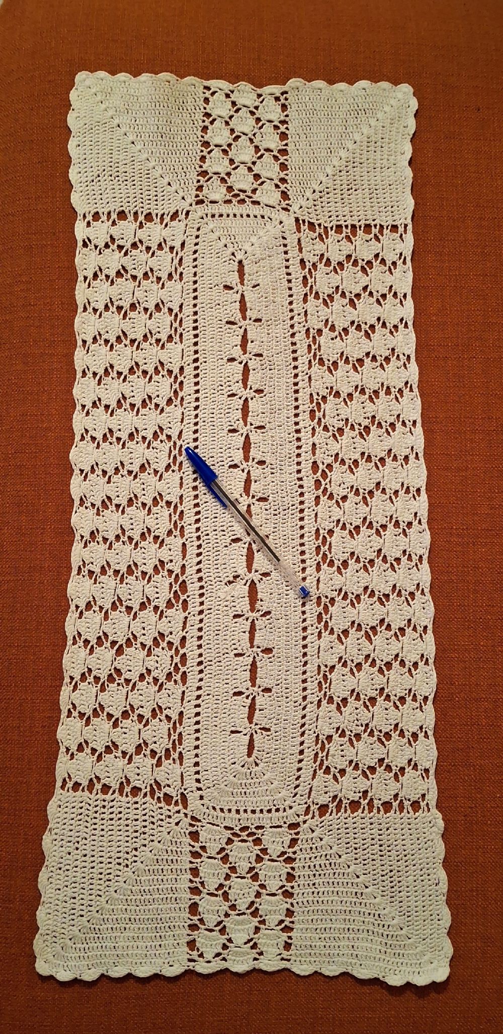 Descrizione:Centrotavola di grandi dimensioni lavorato ad uncinetto, 100% cotone.