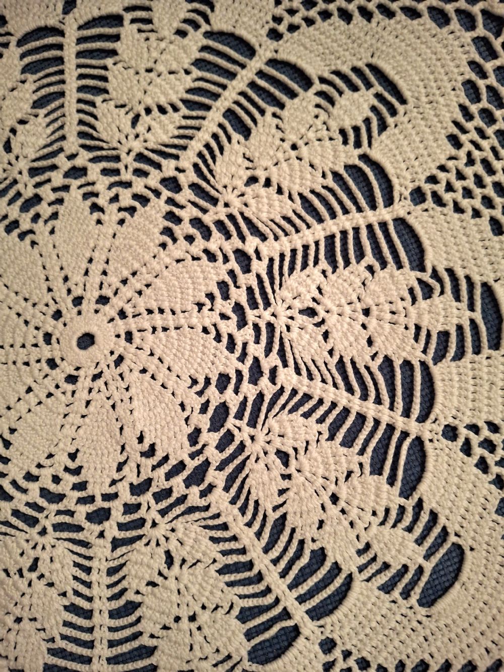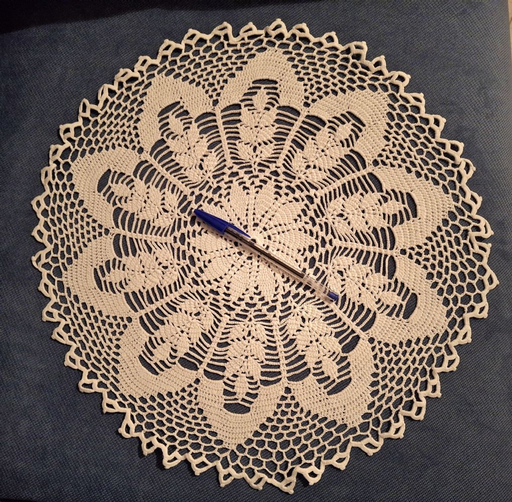 Descrizione:Centrotavola di grandi dimensioni lavorato ad uncinetto, 100% cotone.