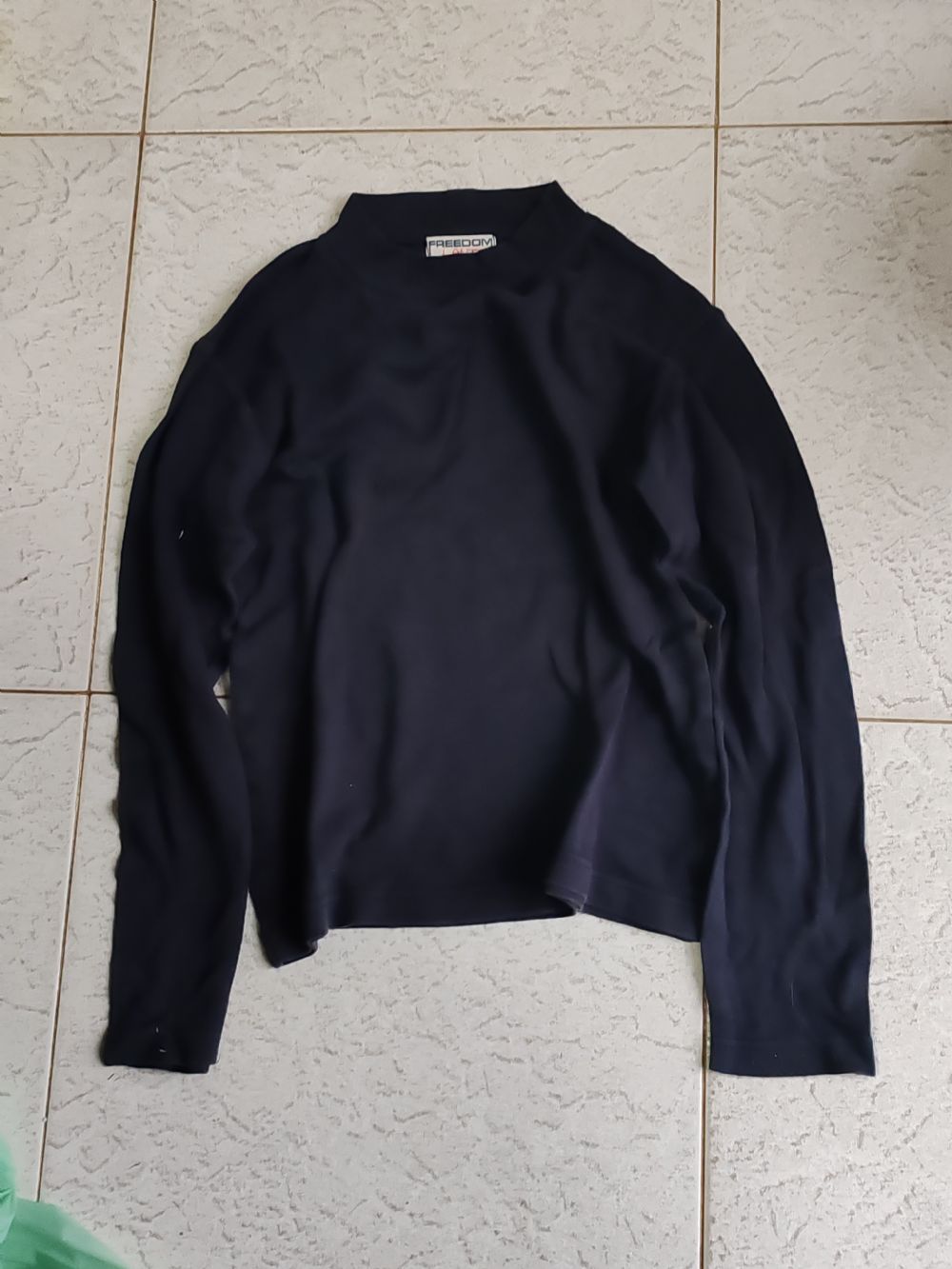 Descrizione:Lupetto blu scuro, tessuto pesante misto cotone,