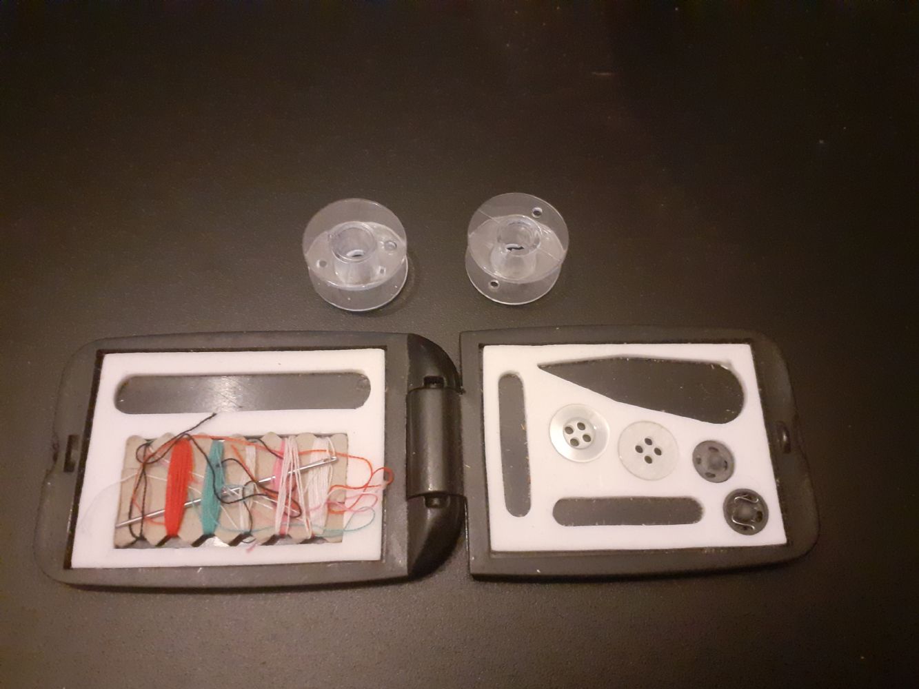 Descrizione:2 bobine per macchina da cucire più kit cucito da viaggio