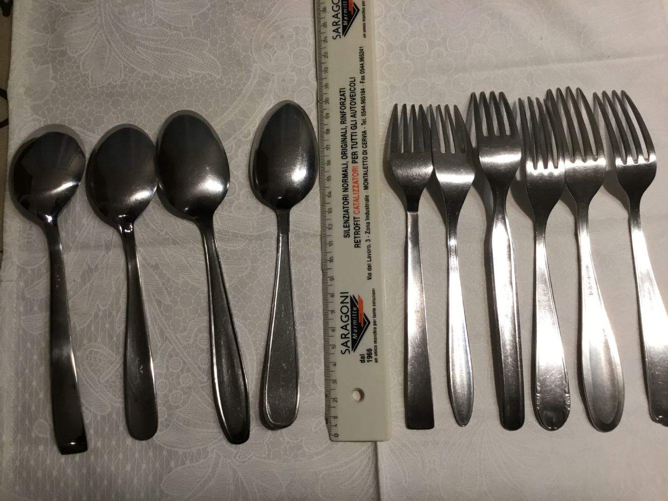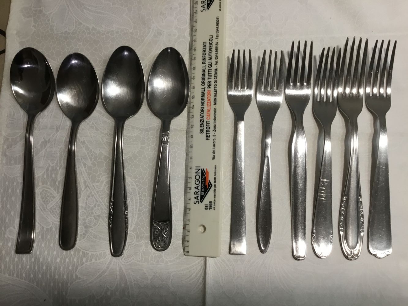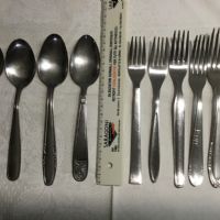 Lotto composto da 4 cucchiai e 6 forchette spaiate, tutte in acciaio inox, usate ma acciaio inox è eterno.