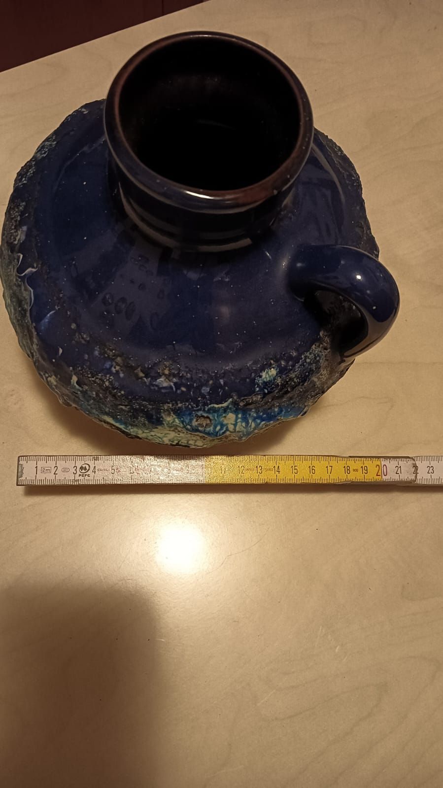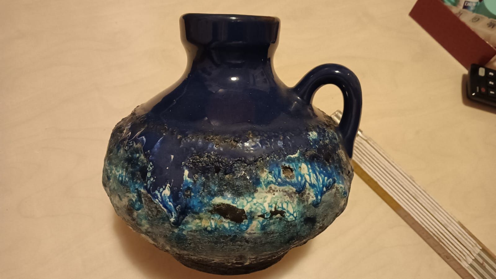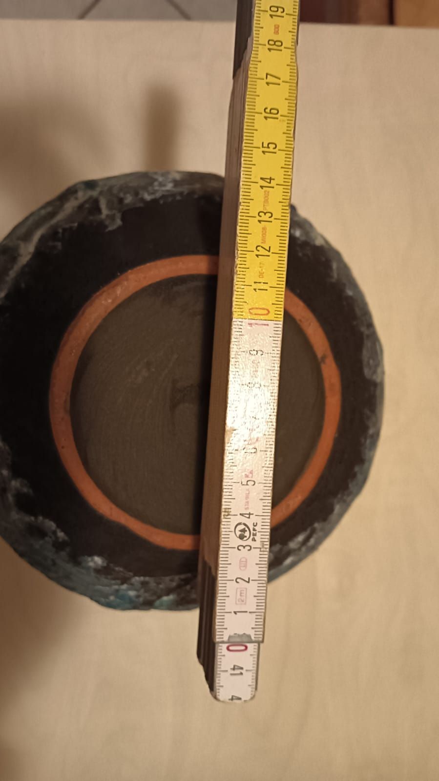 vaso forse in terracotta smaltata e con decorazioni che sembra lava