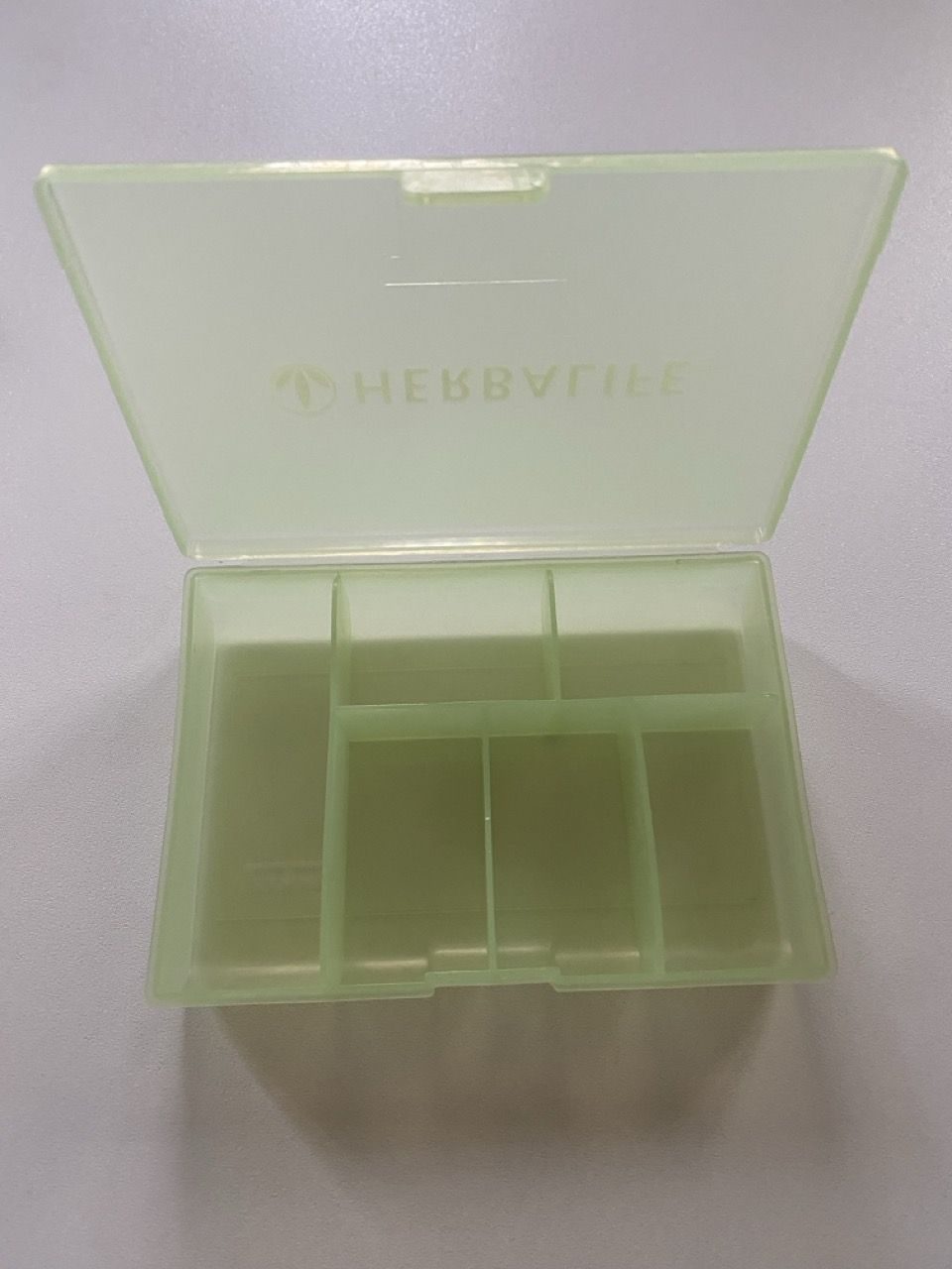 Descrizione:Porta pastiglie grande marchiato Herbalife, nuovo, mai usato. in foto anche il piccolo per capire la misura.