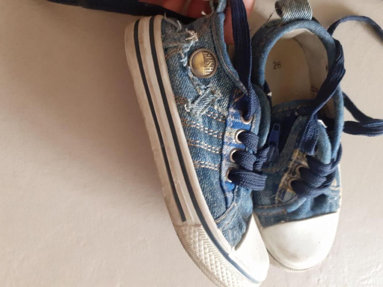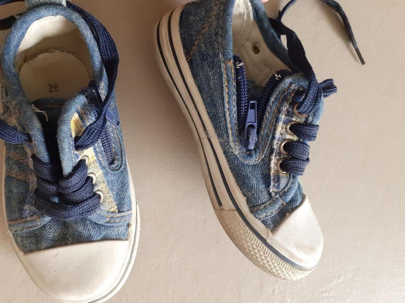 Descrizione:Scarpe sportive in jeans azzurro lacci e cerniera laterale, misura 26