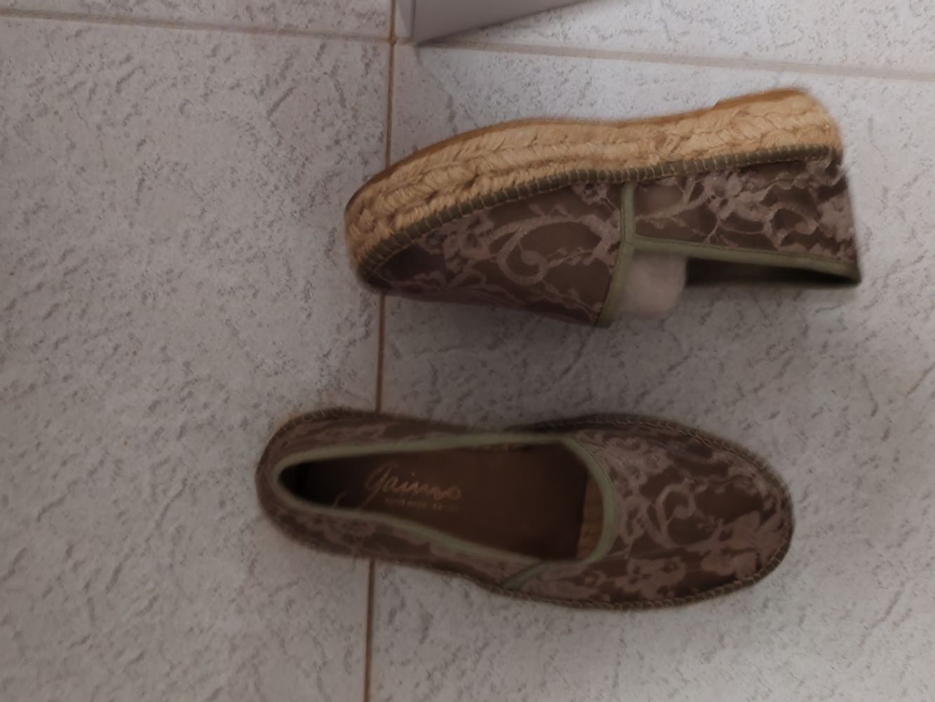 Descrizione:Scarpe donna 37, in corda sotto, sopra in pizzo trasparente