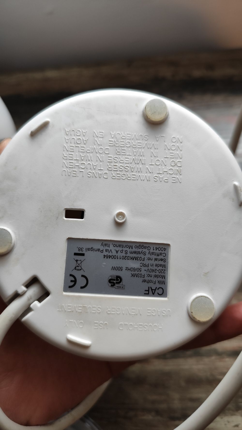 Il frullino di attacca con calamite, dopo l'uso va lavato con acqua corrente, non immergere in acqua e fare attenzione a non bagnare troppo i contatti. Accertarsi che sia ben asciutto una volta lavato perché sennò rischia di andare in corto se lo si accende da bagnato.