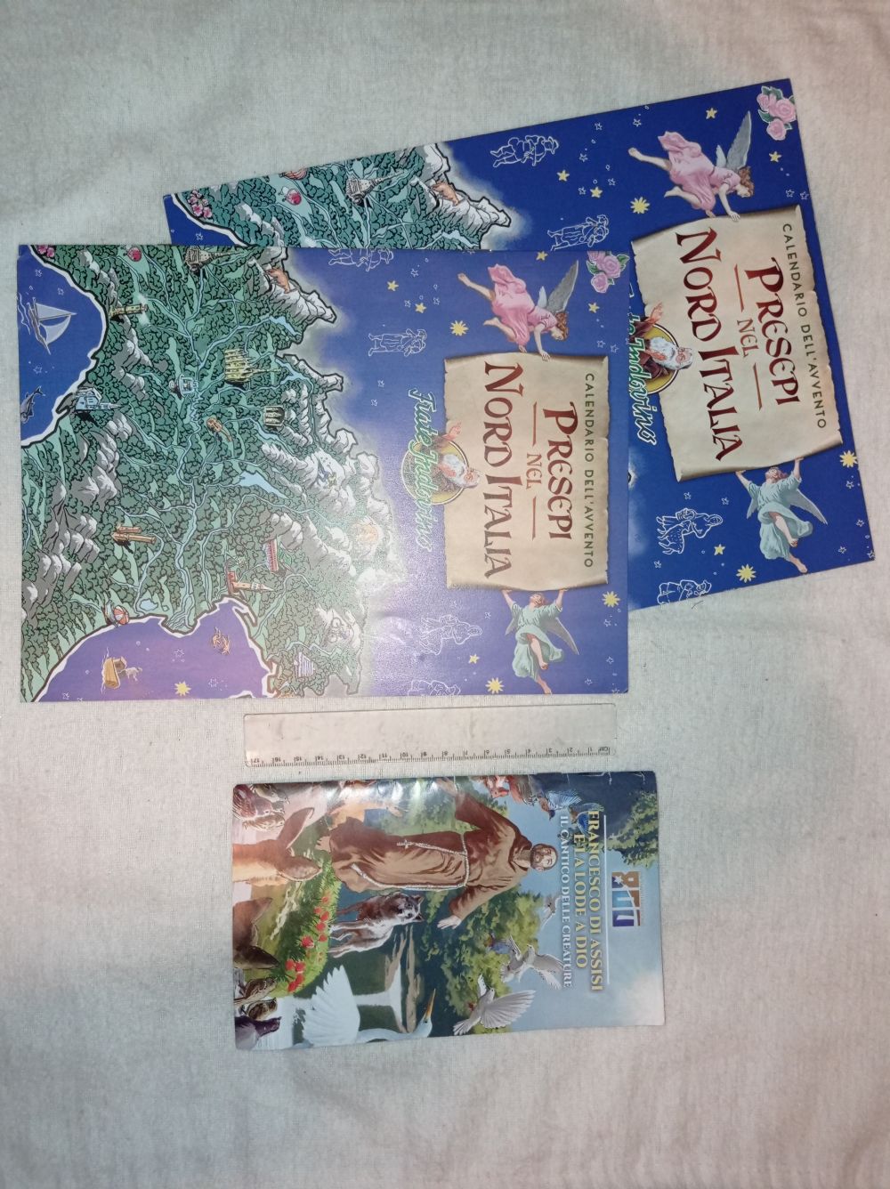 Descrizione:Calendario dell' Avvento in cartone con all' interno i presepi del nord Italia, libretto con le descrizioni dei presepi del nord Italia e aggiungo libretto su San Francesco d'Assisi, tutti marchiati Frate Indovino.