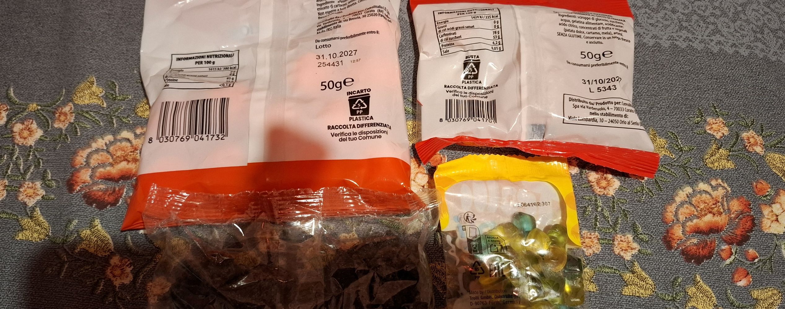 Descrizione:Trovate nella calza ma noi non le mangiamo, scadenza 2027. Nel pacchetto "Trolli" non vedo scadenza ma comunque anche queste recenti.