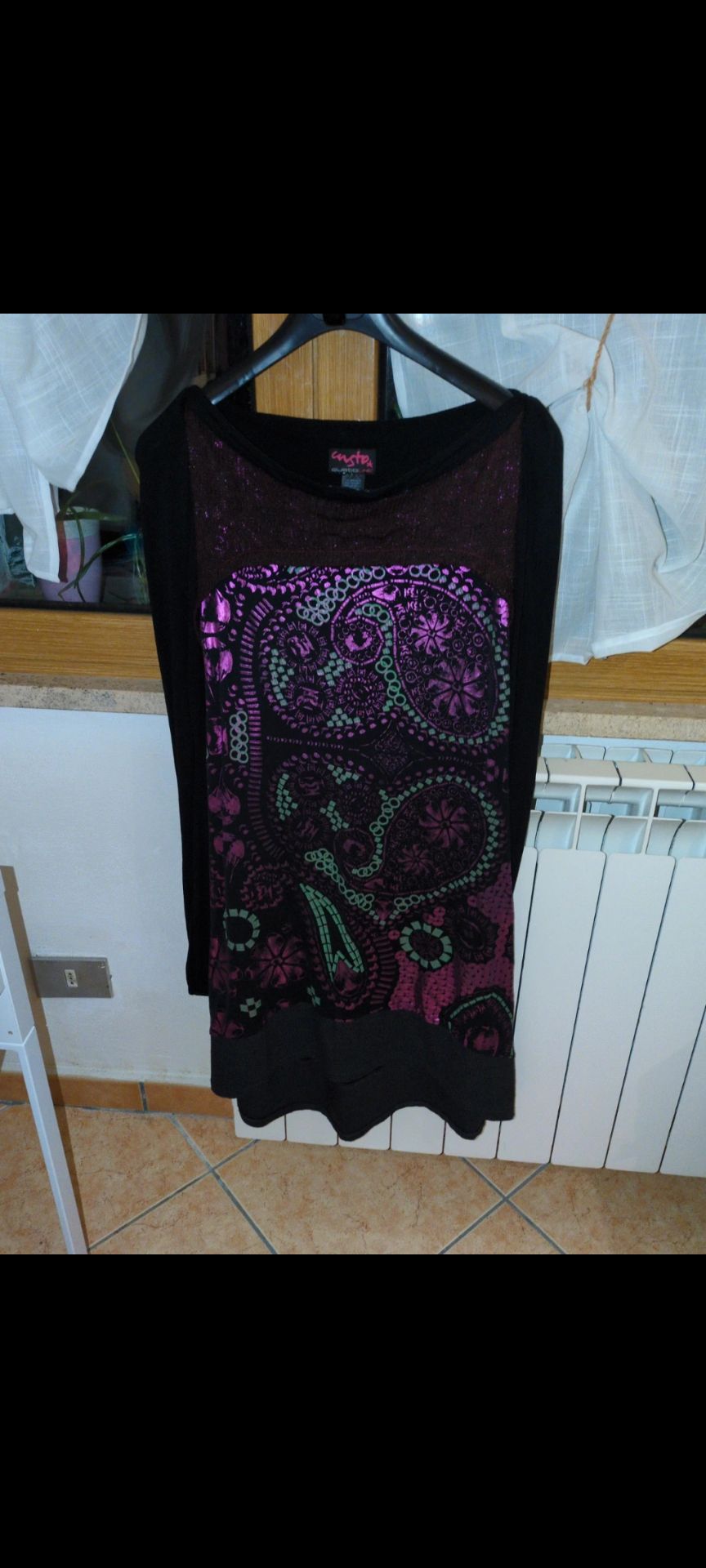 Abito donna cotone tg L marca custo Barcelona, stampa davanti, dietro nero a tinta unita
