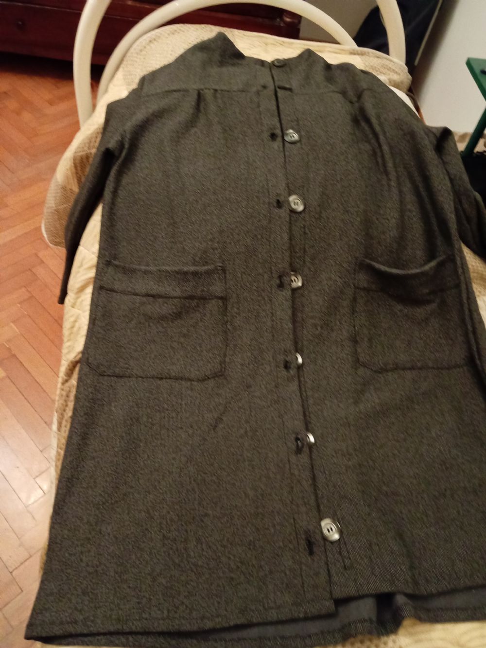 Descrizione:Vestaglia sartoriale, fatta fare su misura, peccato che le misure siano state prese male ed è risultata troppo corta e larga sulle spalle