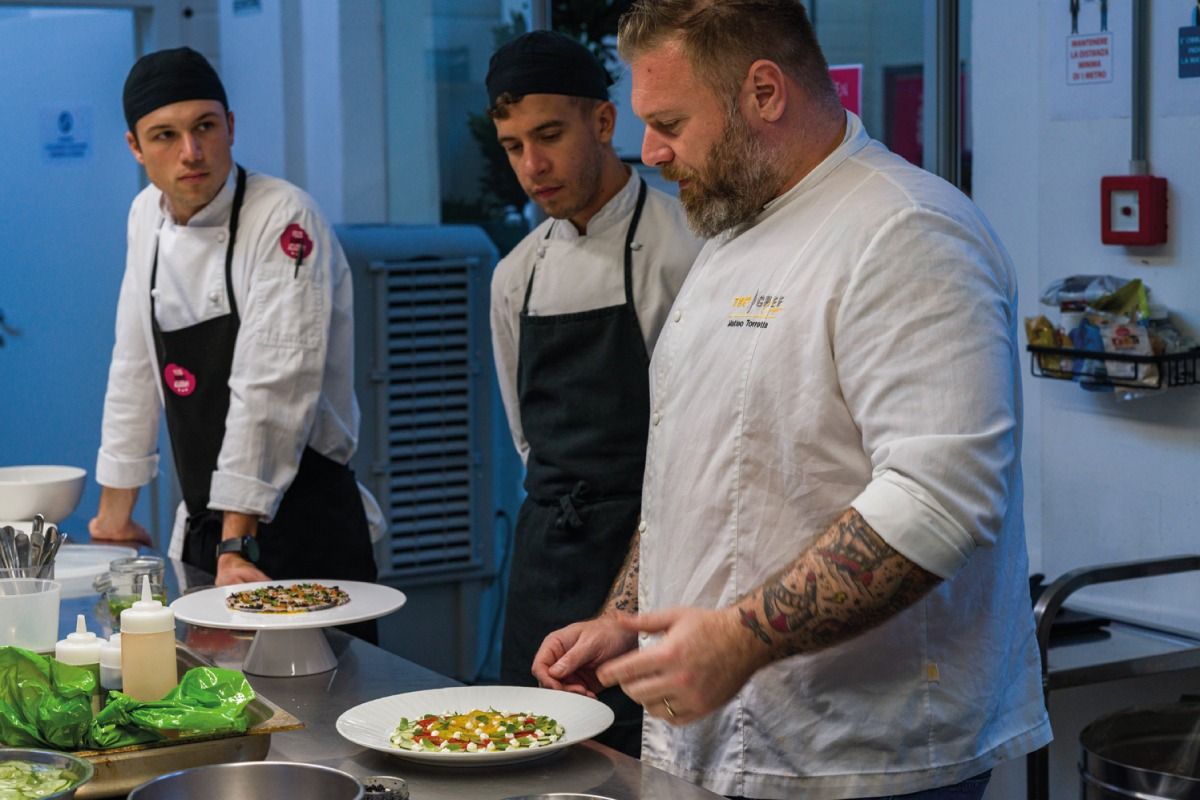 Nel senso ero di fronte alla metro viola Gerusalemme, c'era un solo cuoco e noi, immagino che il menù sia stato concordato con l'organizzazione della serata, abbiamo trovato lì la spesa e il cuoco ha i diviso i compiti e insegnato cosa fare quindi ognuno ha fatto solo una parte della ricetta ma poteva vedere... Poi quando era pronto ci siamo seduti a tavola e abbiamo mangiato...