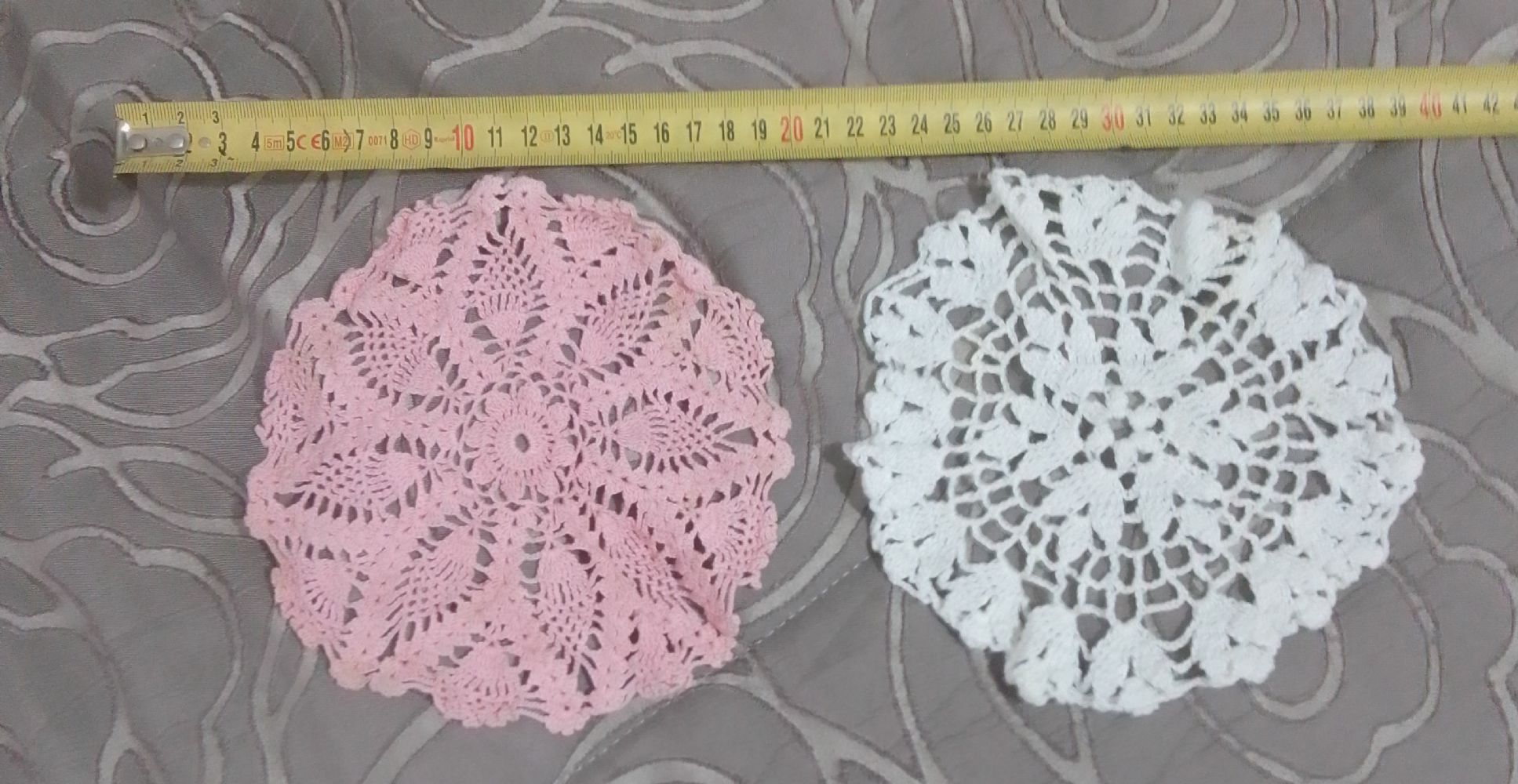 Due centrini cotone realizzati a mano rosa e bianco