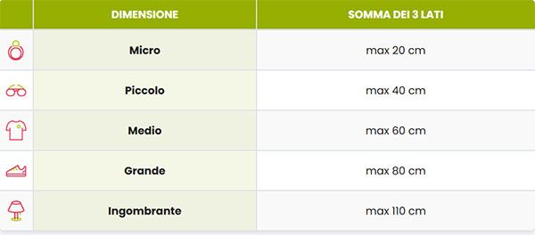 L'immagine indica il caso - più raro, ma quello in cui è più importante scrivere la dimensione! - in cui ci siano più oggetti imballati insieme.