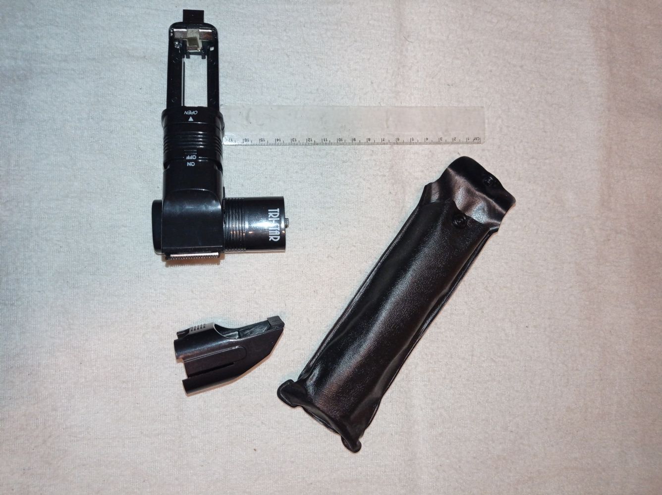 Descrizione:Rasoio (forse anche usabile come tagliacapelli) portatile da viaggio, funzionante con 4 pile stilo, con custodietta in plastica e il pettine a determinare l' altezza del taglio.