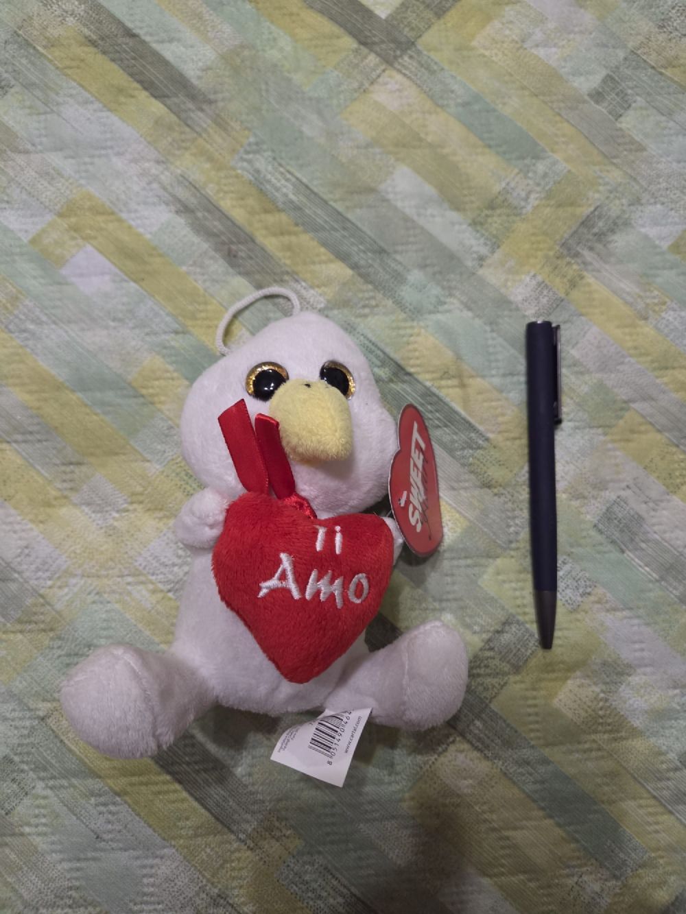 Adottami pulcino con occhi dolci, ancora con cartellino, tenuto solo esposto