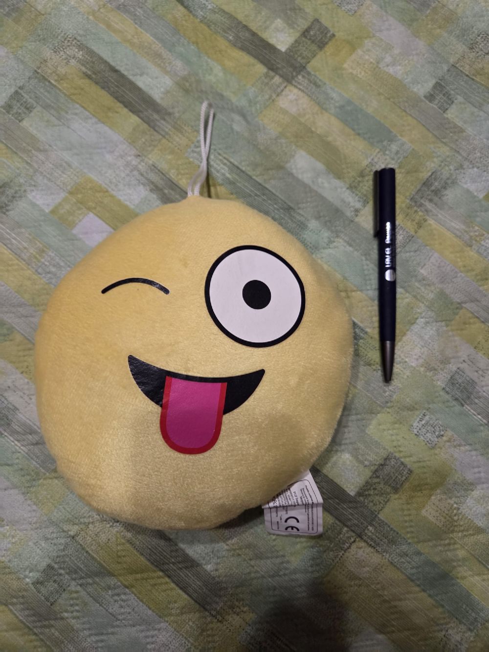 Adottami smile giallo che fa la linguaccia, tenuto solo esposto