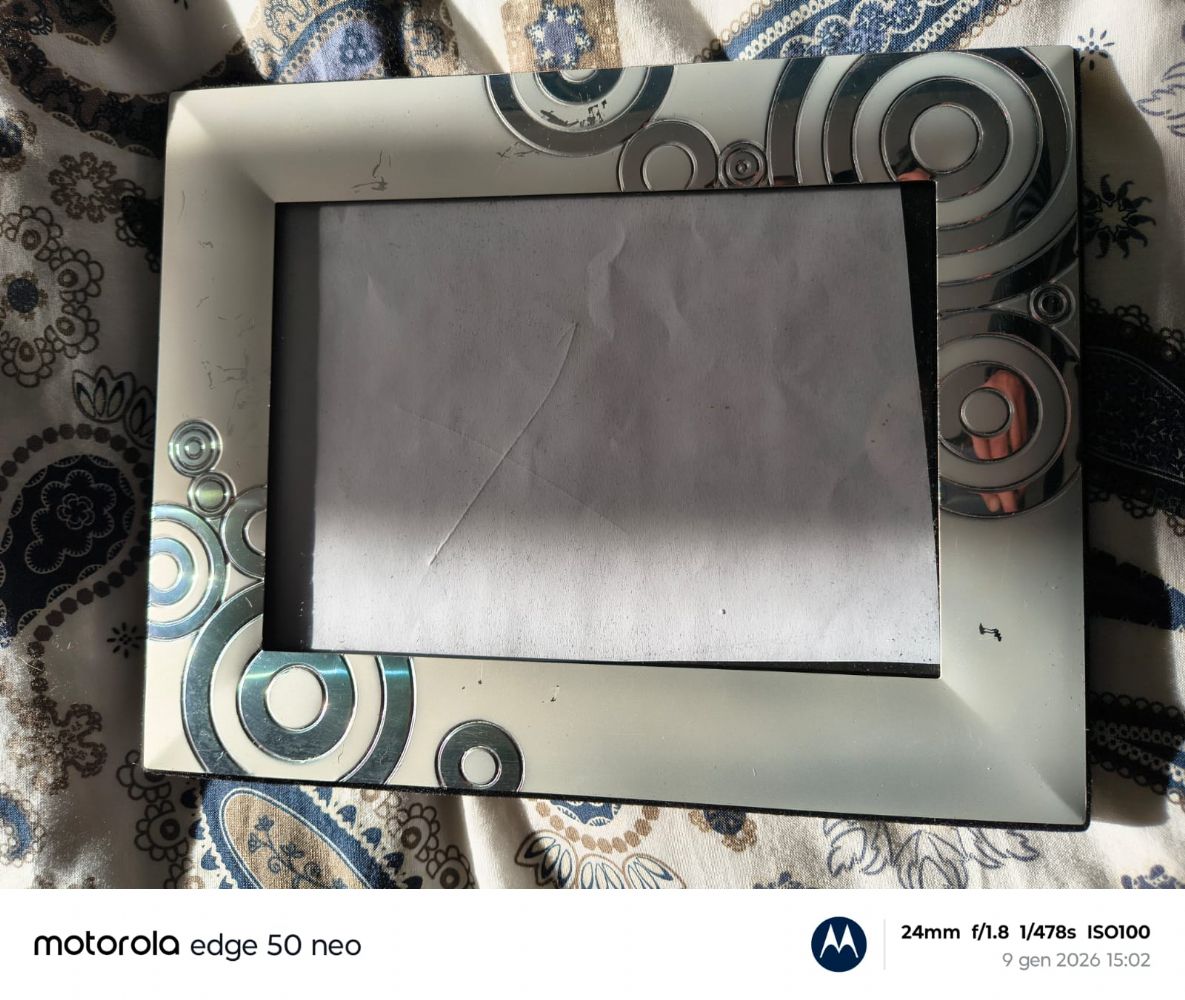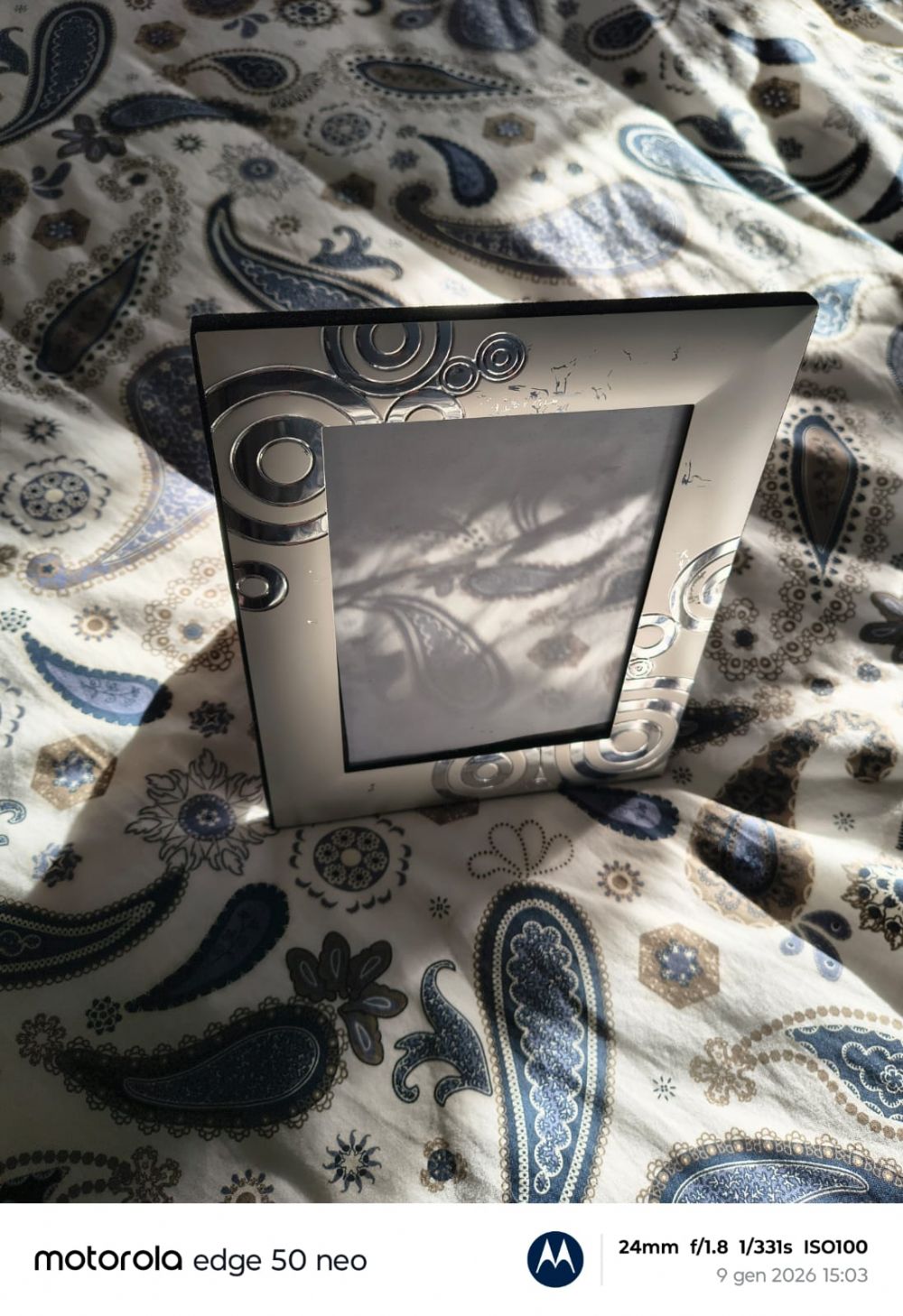 Descrizione:cornice in materiale tipo silver, molto usata con diversi difetti come da fotografia. regalo per creative.