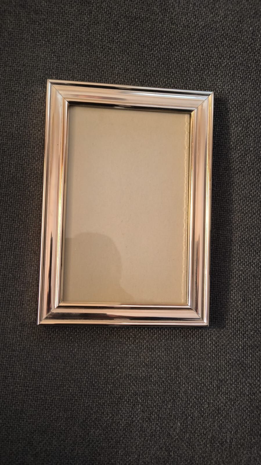 Descrizione:cornice tipo silver ( non sono sicura del materiale) dimensioni della cornice 17x12 cm dimensioni del vetro 14x9 cm