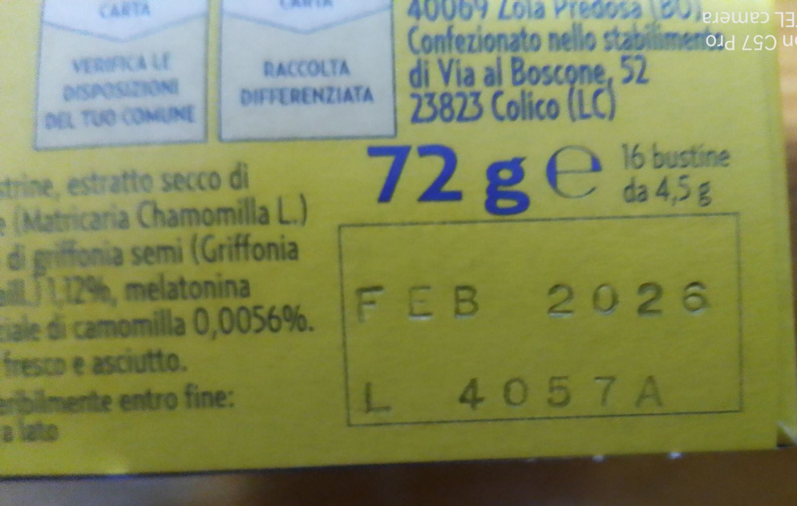Descrizione:Camomilla solubile Bonomelli scadenza in foto