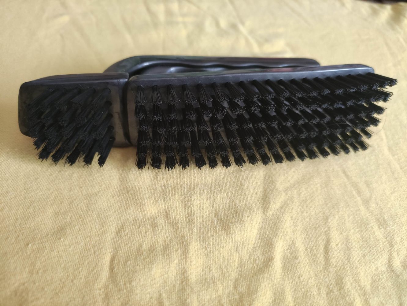 È priva dell'' incarto originale, ma non è mai stata usata Nasce per lucidare le scarpe con lo spazzolino piccolo, e lucidarle con quella più grande.