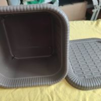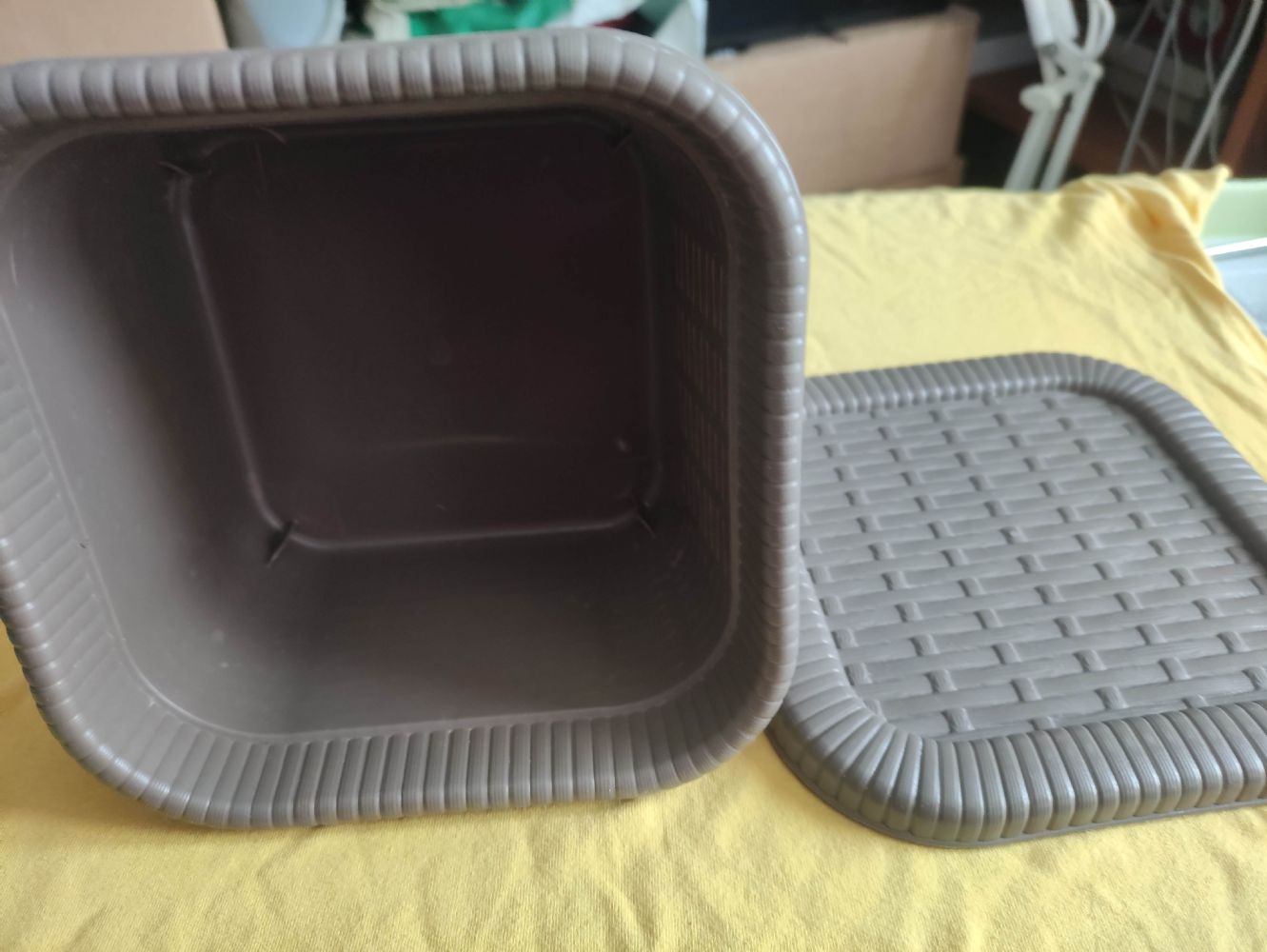 Quadrato, alto cm 10, alla bocca internamente cm 16 x16, alla base 13x13 Plastica dura