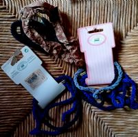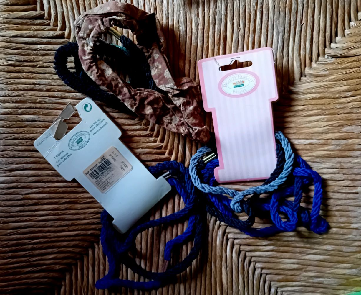 Descrizione:Non più elastici. Molti nuovi confezionati ma col tempo... quello marrone a fiorellini è uno scrunchie ma anche il suo elastico non è più.