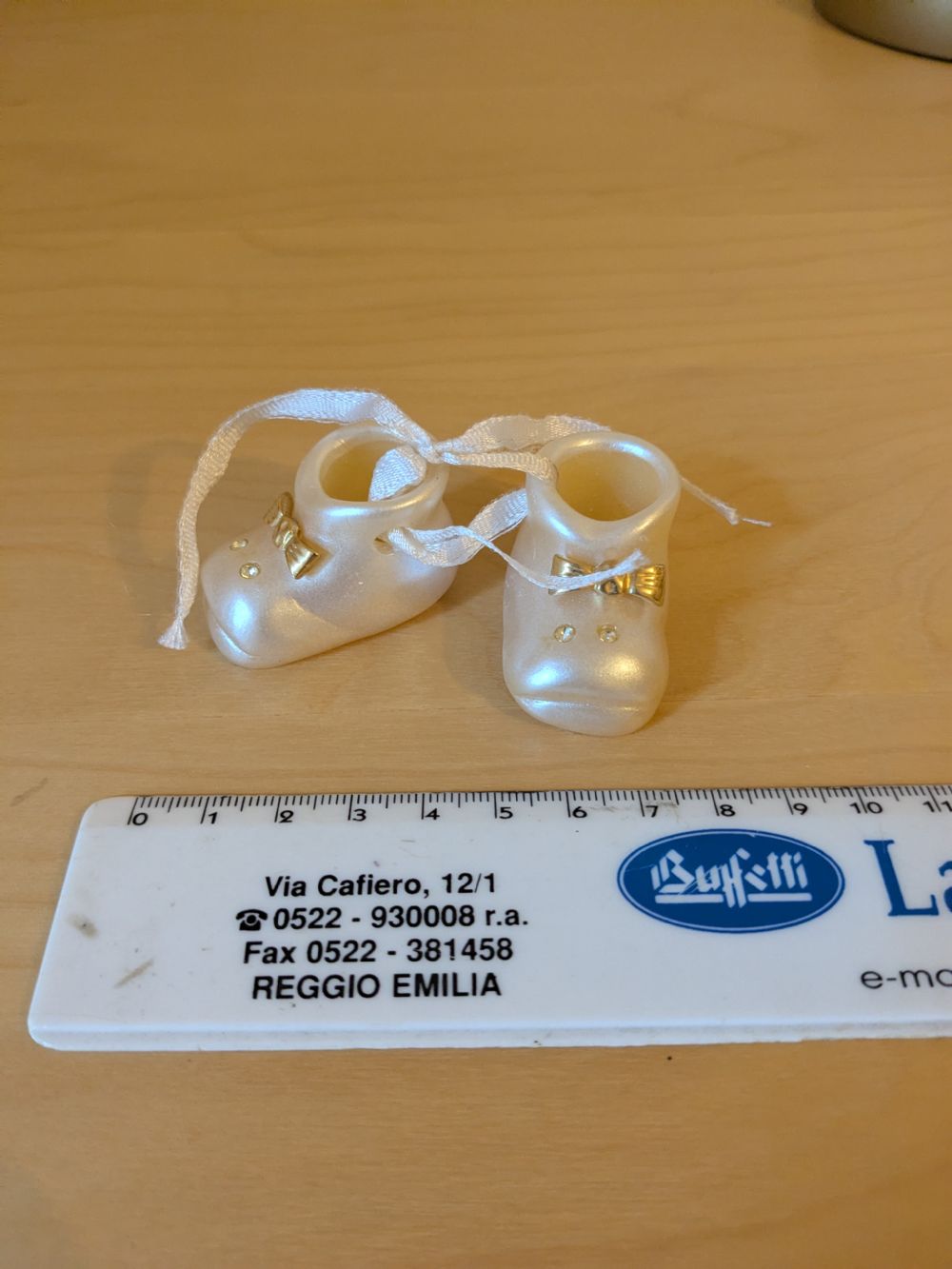 Descrizione:Decorazione in resina a forma di scarpine nessun difetto
