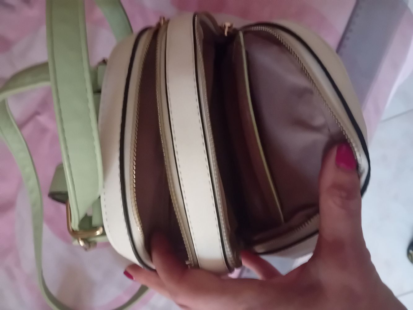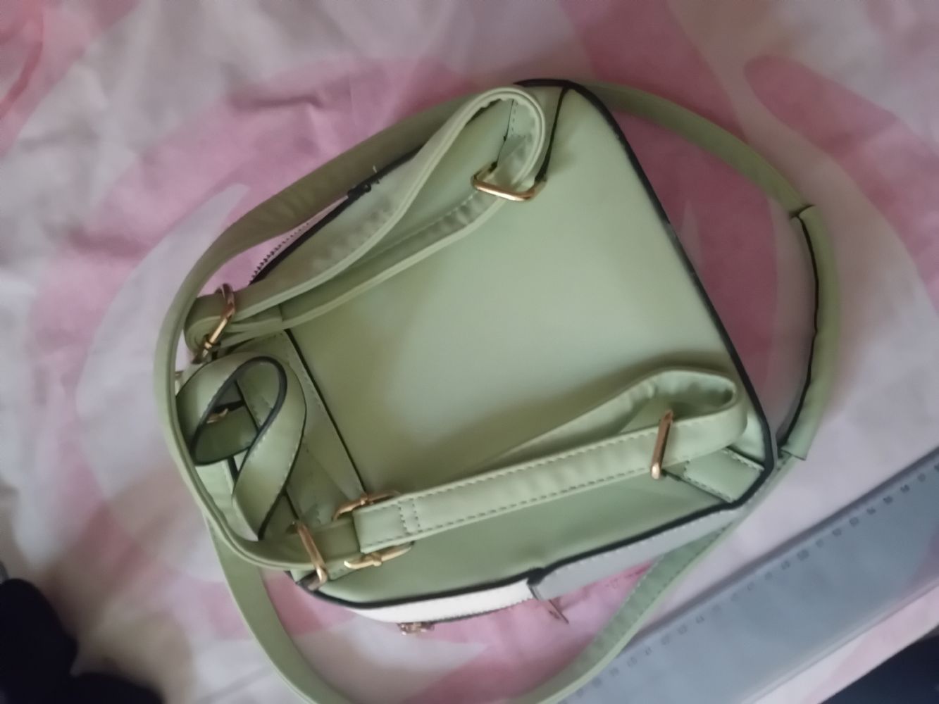 Barattato ma alla fine non uso 18cm/22profondo 8cm credo ecopelle ma non vedo etichette