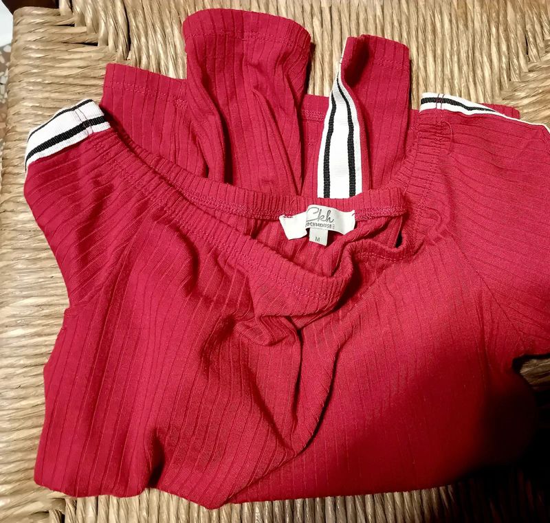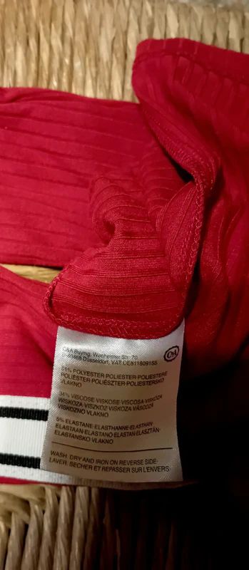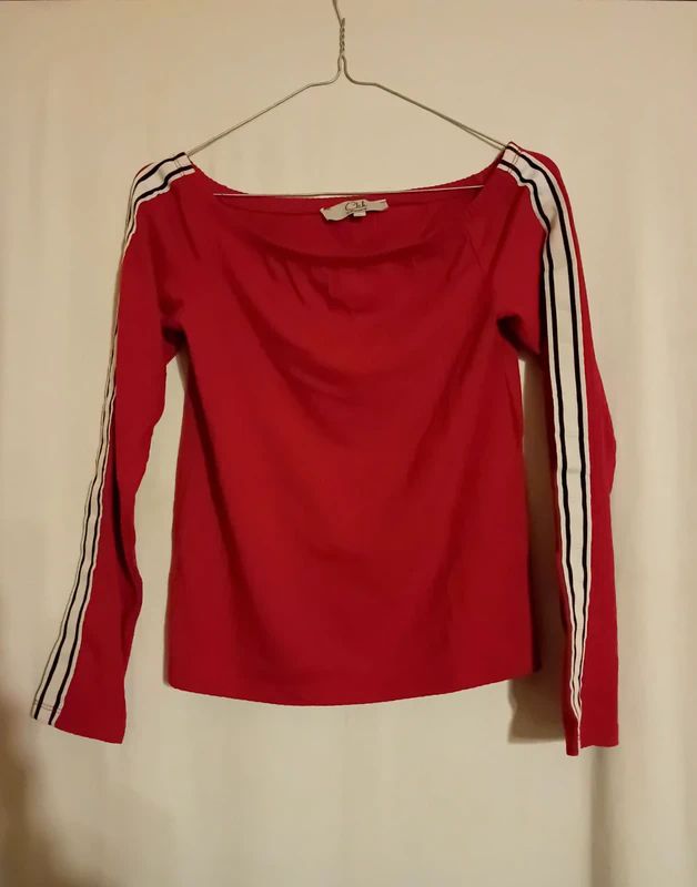 Descrizione:A coste, molto carina, da portare aderente scoprendo le spalle. Composizione in foto. Ascelle a riposo 37 cm. Ottimo stato. Bel rosso scuretto.