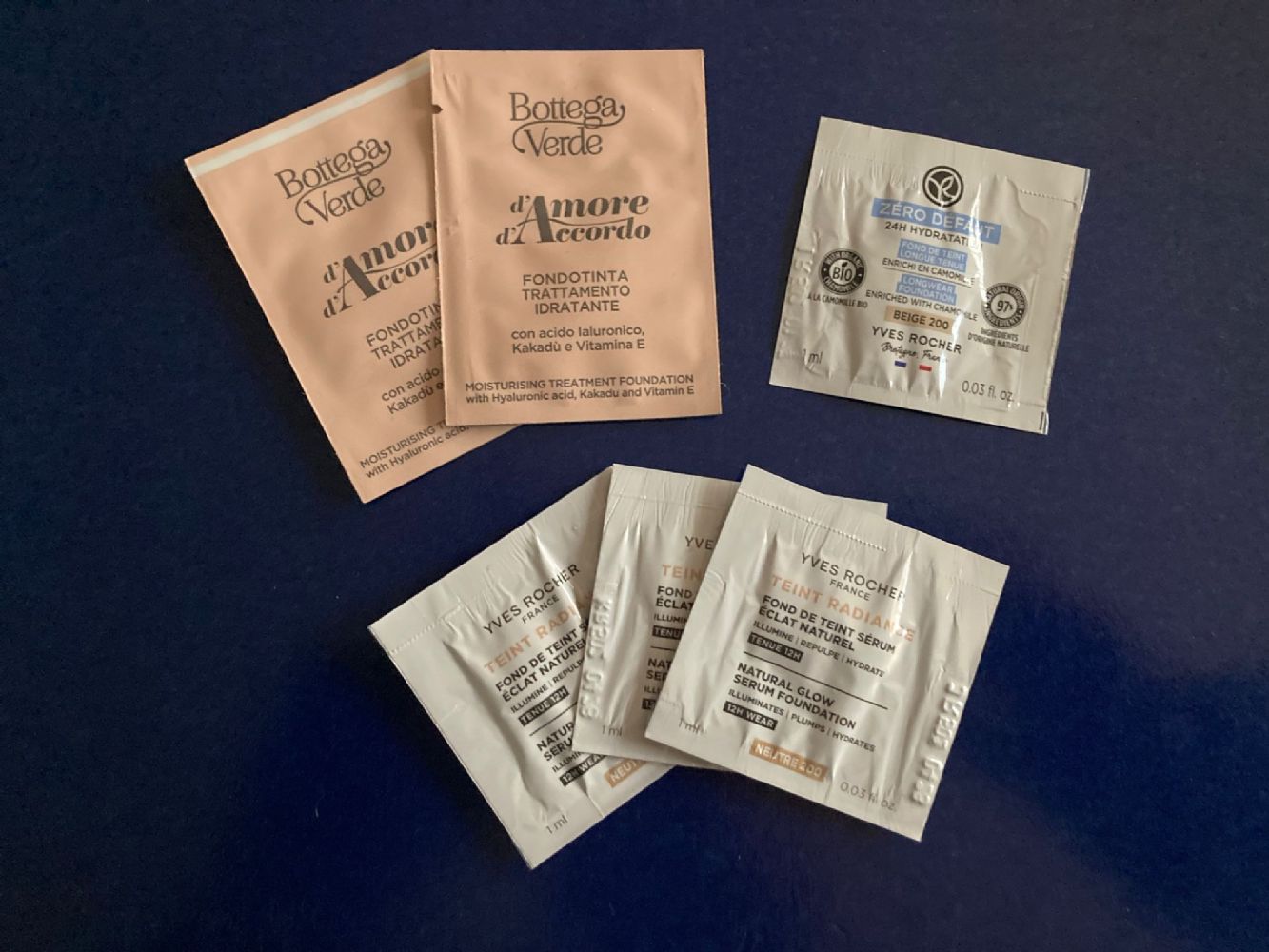 Lotto di fondotinta di Bottega Verde e Yves Rocher. Non seguo la coda per le assegnazioni.