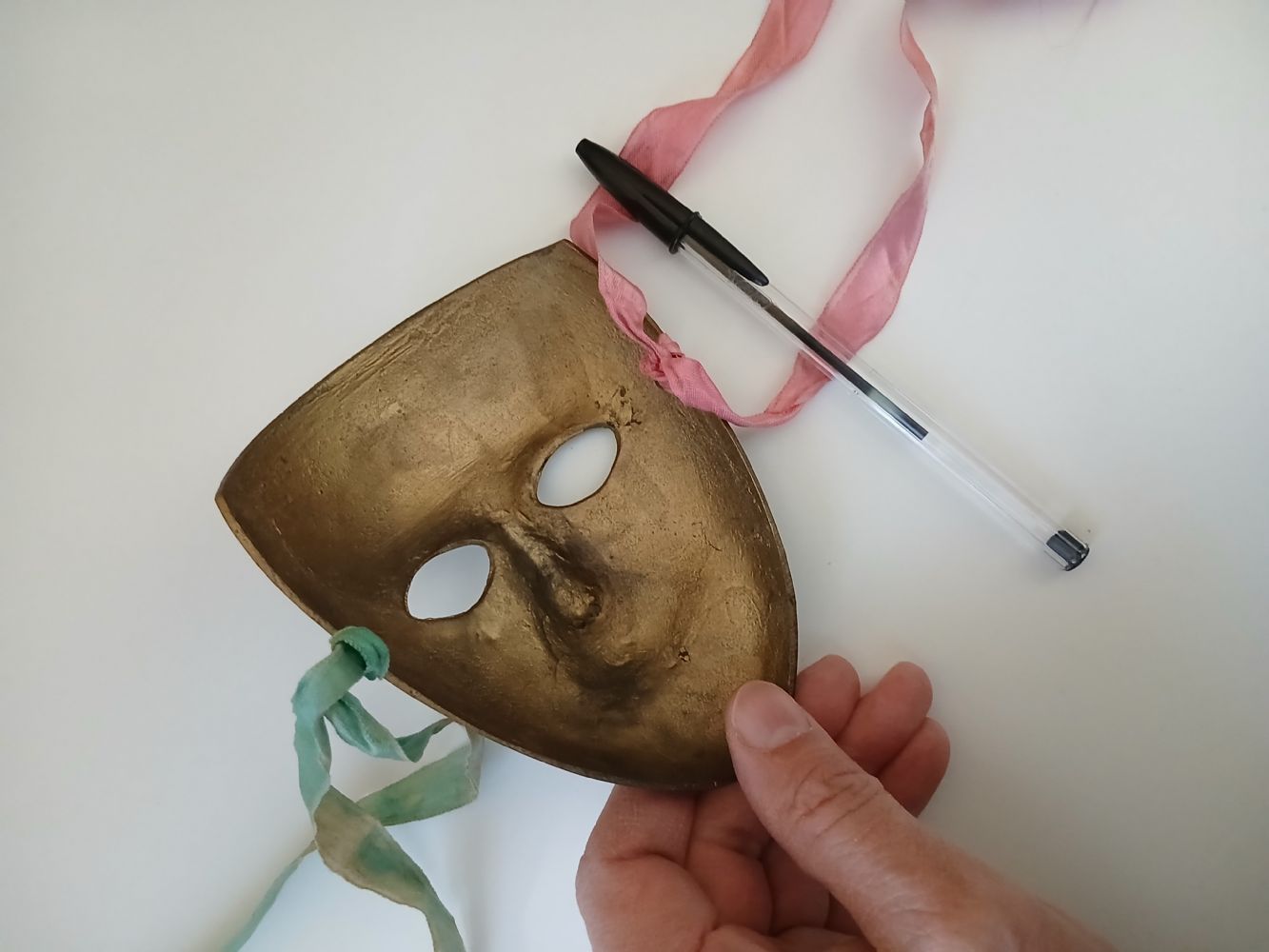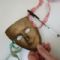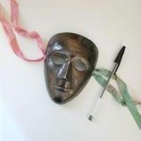 Descrizione:Per appendere al muro o rielaborazione o quello che volete voi. In metallo, sembra bronzo o colore simile un po' marrone scuro, la penna bic per le dimensioni. Ha due nastrini laterali un pochino consumati. Foto 2: il retro.