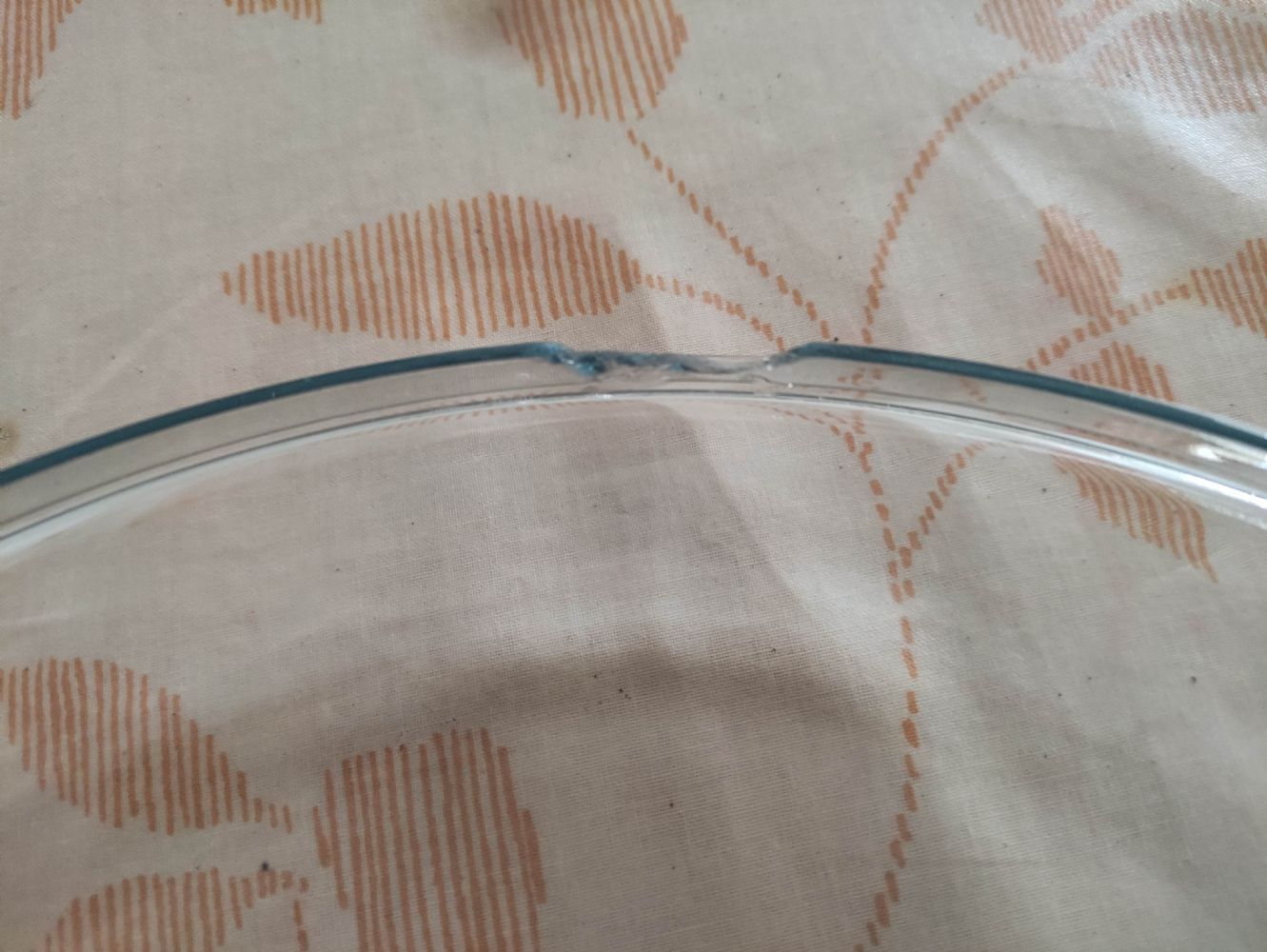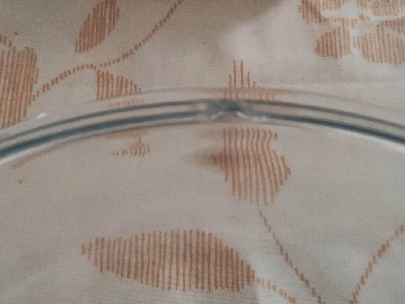 Presenta una sciupatura nel bordo interno come da foto, in posizione diametrale, dove urtava il fermo del mobile, ma non ne disturba l''uso. Non graffia.