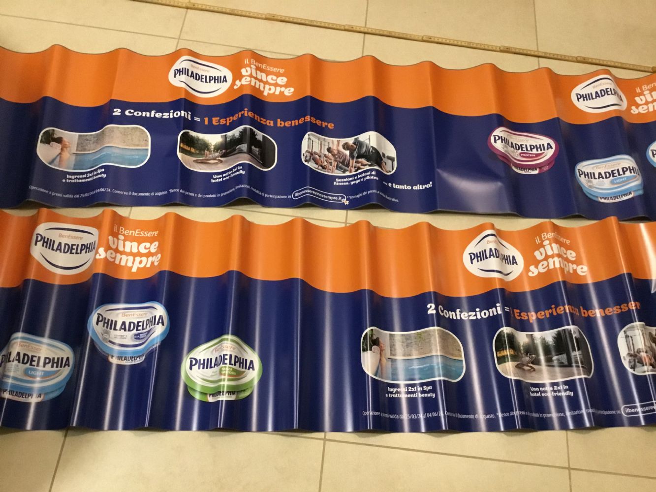 Descrizione:Strisce in materiale plastico, con immagini promozionali sul fronte, completamente grigie sul retro dove c’è nella parte alta una parte adesiva togliendo la bandella che la ricopre.
