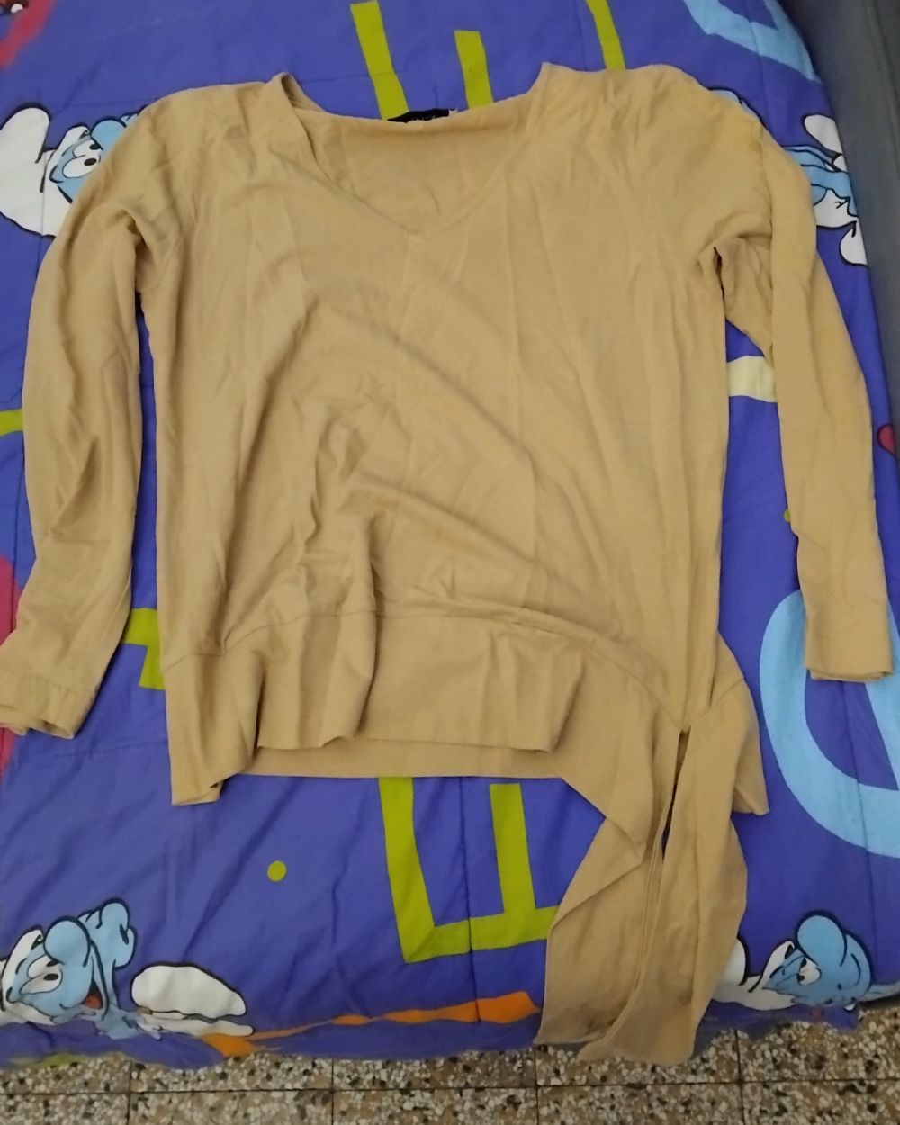 Descrizione:100% cotone, con lacci da annodare sul fianco sinistro. Misure spalle 37, ascelle 43 cm, lunghezza 60 cm, maniche 52 cm.