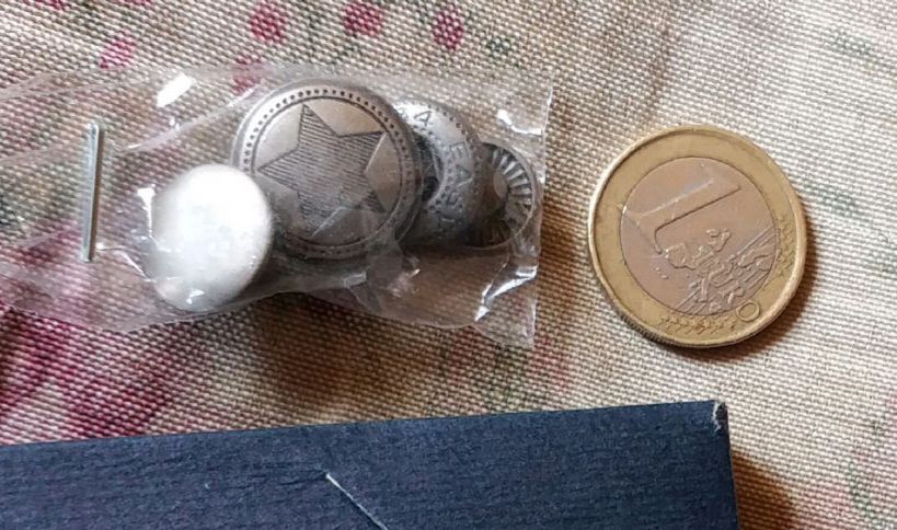 Descrizione:In bustina sigillata, 2 bottoni che erano di ricambio, uno più grande con stella e uno più piccolo.