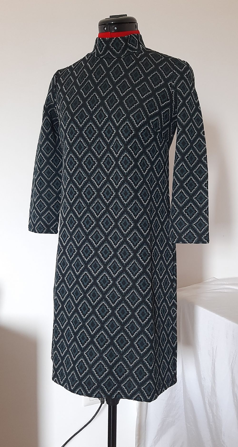 Modello dritto, aderente sul seno e alle braccia, ha un piccolo colletto a pistagna e zip in metallo dietro per chiudere. Versatile e comodo adatto per occasioni informali, lavoro o altro.