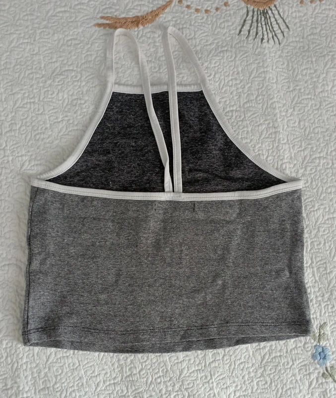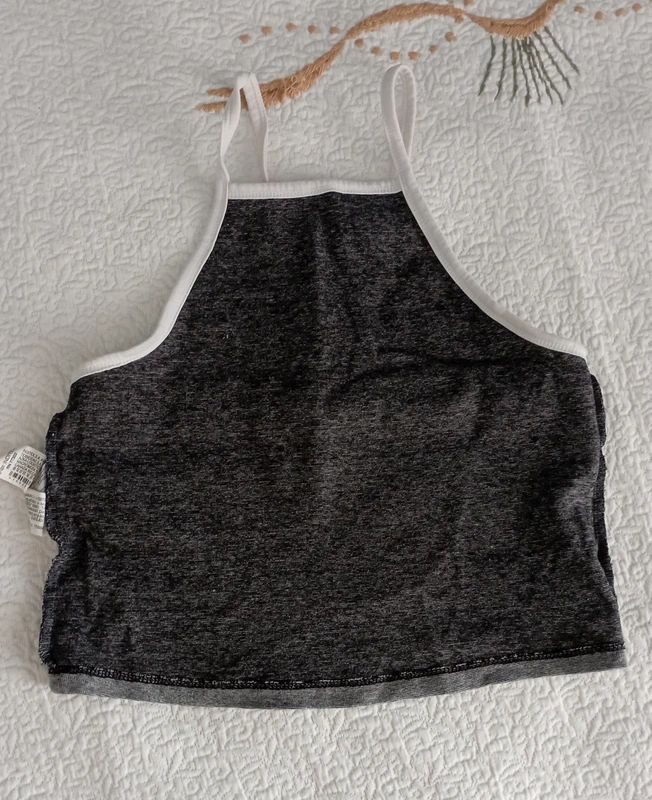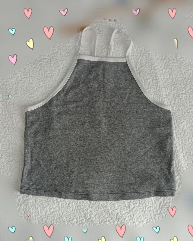Descrizione:Crop Top basico, Zara Trafaluc, con scollo all'americana, spalline sottili e profili bianchi. Colore grigio melange. In ottime condizioni, senza difetti.