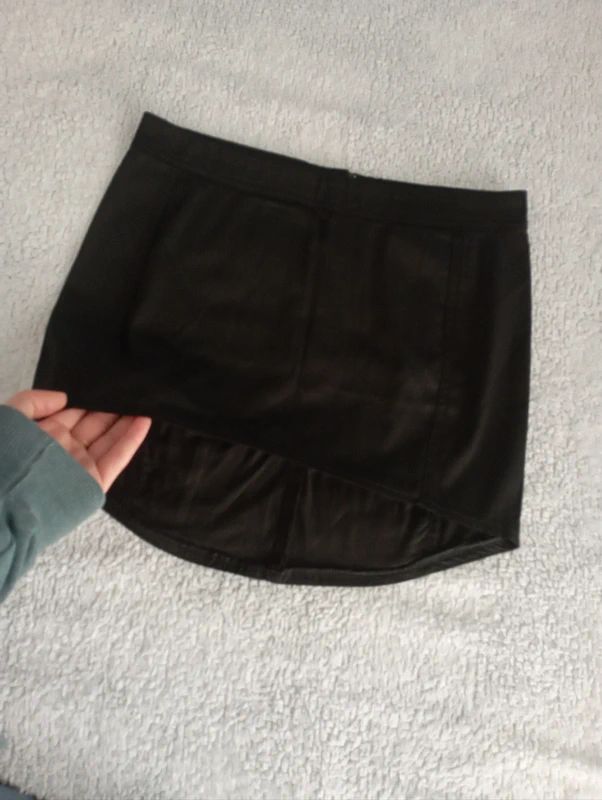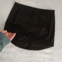 Descrizione:Gonna in cotone nera, modello a vita regolare con doppio livello di lunghezza al fondo, davanti più corto del dietro.