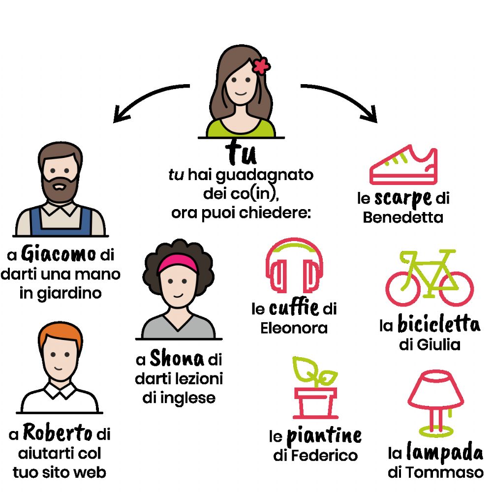 Faccio parte di un gruppo della mia zona dove si può solo regalare o chiedere in regalo e funziona più o meno così. Nn ci sn crediti ma a seconda delle richieste è il proprietario dell' oggetto che decide a chi regalarlo.